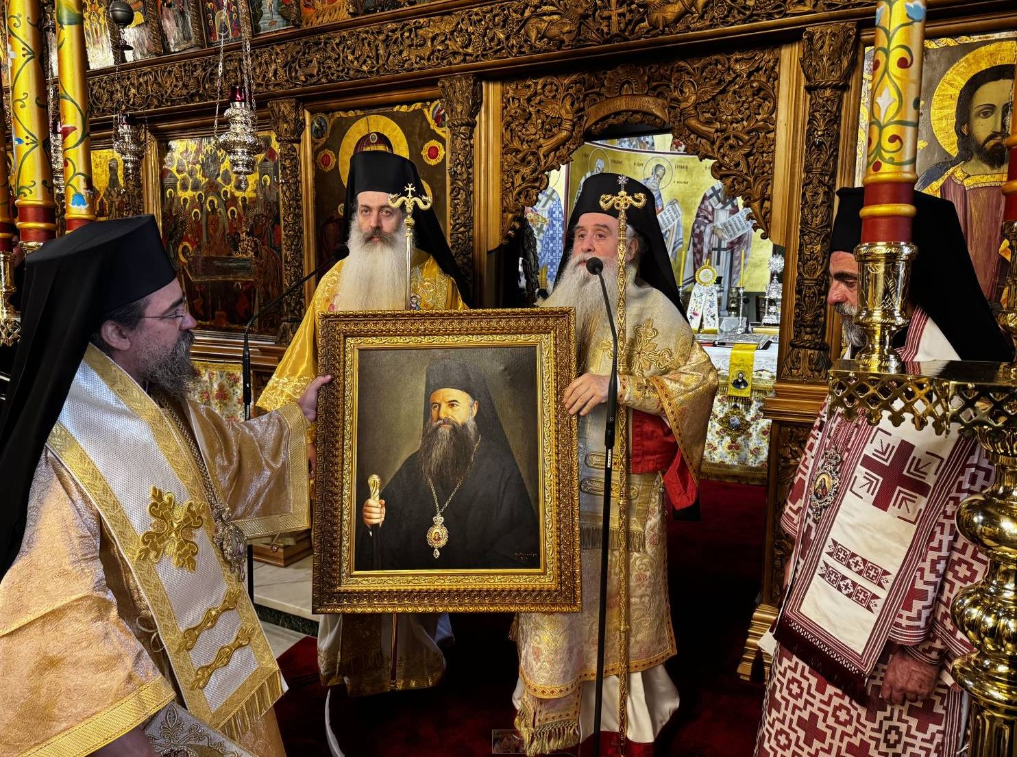 Ἀκολούθως προσέφερε στὸν Σεβ. Ἀρχιεπίσκοπο κ. Συμεών ἕνα κάδρο τὸ ὁποῖο ἀπεικονίζει τὸν Μακαριστὸ Γέροντά του, καθὼς καὶ ἕνα ἀντίγραφο αὐτοῦ στὸν Σεβ. Μητροπολίτη κ. Συμεών καὶ στὸν Θεοφ. Ἐπίσκοπο κ. Βαρθολομαῖο.