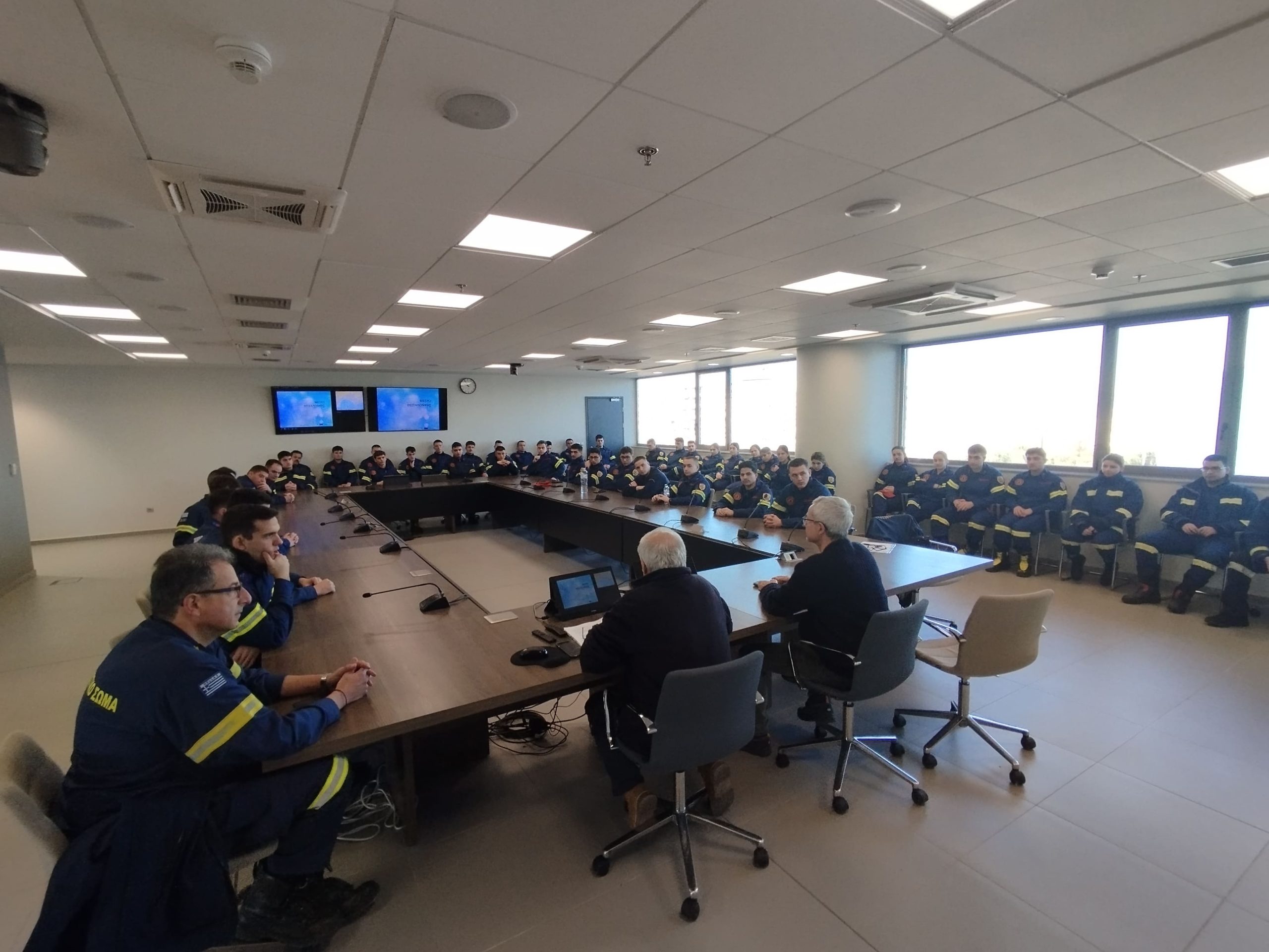 Την Τετάρτη 14 και Πέμπτη 15 Ιανουαρίου 2026 στην πόλη της Θεσσαλονίκης , εκατό (100) Δόκιμοι Πυροσβέστες του Γ’ έτους της Σχολής Πυροσβεστών Πτολεμαίδας ενημερώθηκαν σε θέματα πυρασφάλειας και ξεναγήθηκαν από τους Υπεύθυνους Μηχανικούς της εταιρίας «Ελληνικό Μετρό Α.Ε.» στο αμαξοστάσιο του μετρό Θεσσαλονίκης σε συνεργασία με τον υπεύθυνο καθηγητή Αντιπύραρχο Κωνσταντίνο Τσαπόγα. Η Διοίκηση της Σχολής ευχαριστεί ιδιαίτερα την εταιρία «Ελληνικό Μετρό Α.Ε.» για την φιλοξενία , την εκπαίδευση και την άψογη συνεργασία.