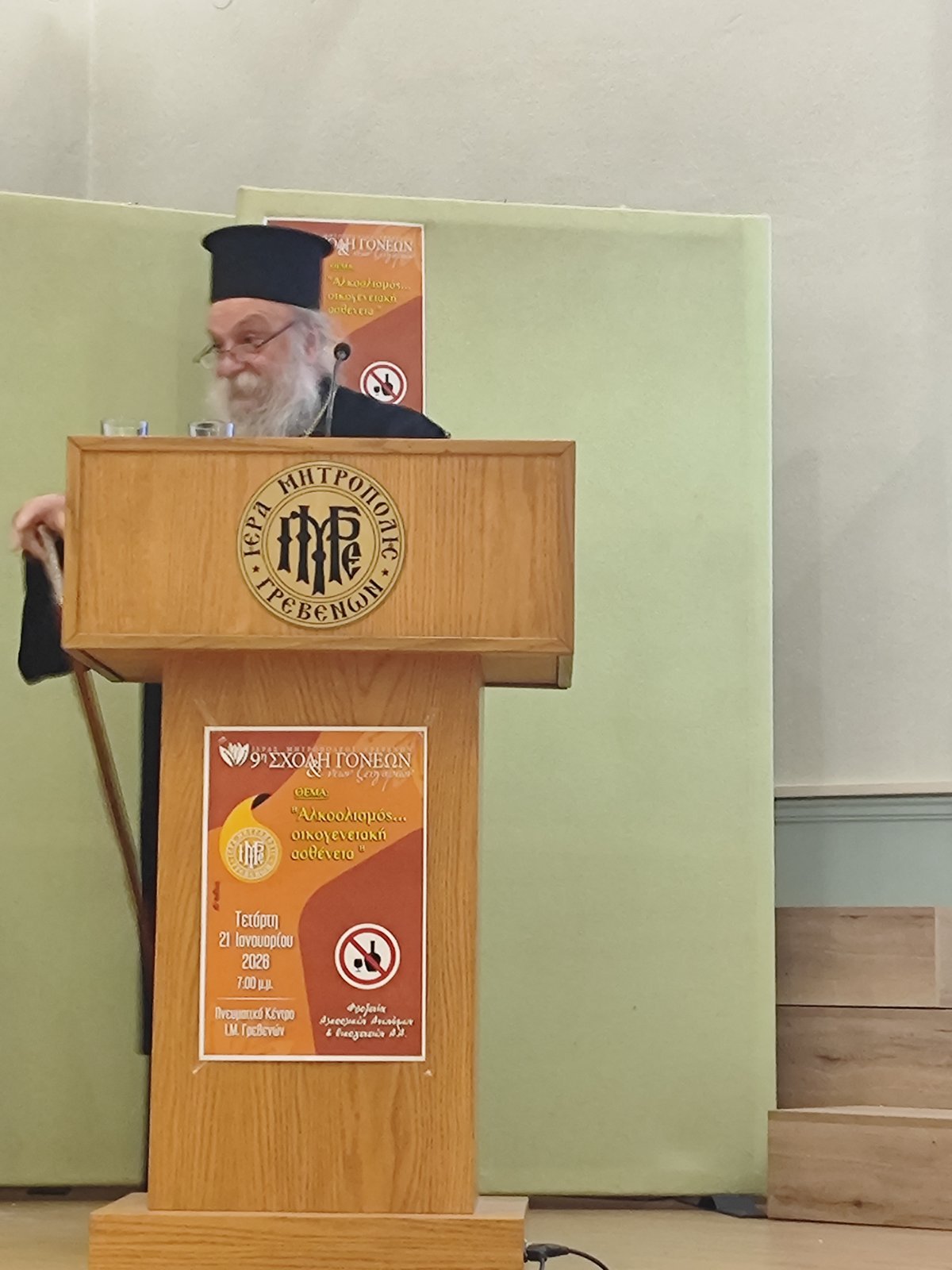 Στα πλαίσια της φιλοξενίας των Ανωνύμων Αλκοολικών και των Οικογενειών τους η Ι.Μ. Γρεβενών στην 3η για φέτος συνάντηση της Σχολής Γονέων & Νέων Ζευγαριών, την χιονισμένη Τετάρτη της 21ης Ιανουαρίου 2026 προβληματίστηκε αρκετά από τους ομιλητές που παρουσίασαν τον θέμα του Αλκοολισμού και το οποίο έδειξαν πως είναι μία σοβαρή ασθένεια. Πρώτα μίλησε η κα. Ντόνα Κωνσταντίνα, διευθύντρια της Παθολογικής Κλινικής του Γ.Ν. Γρεβενών, που με επιστημονικό τρόπο φανέρωσε το πρόβλημα και το κατέδειξε ως ασθένεια.