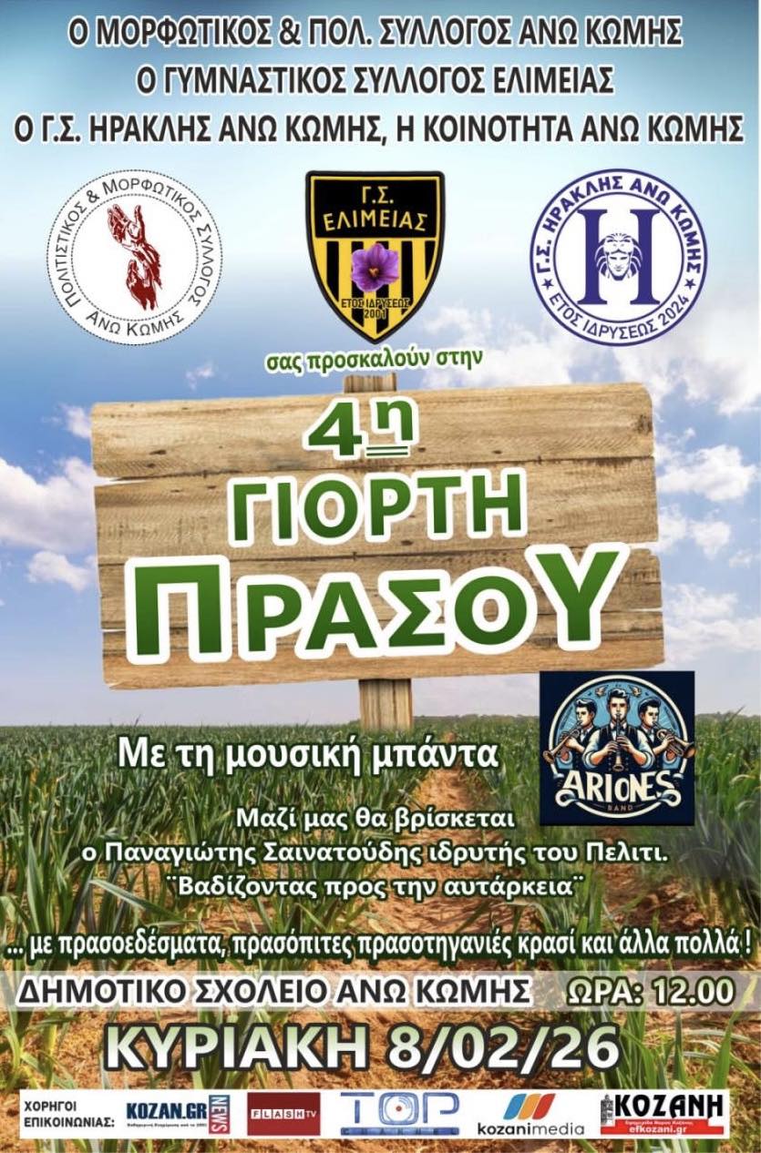 Ο Μορφωτικός & Πολιτιστικός Σύλλογος Άνω Κώμης, ο Γυμναστικός Σύλλογος Ελίμειας, ο Γ.Σ. Ηρακλής και η Κοινότητα Άνω Κώμης σας προσκαλούν σε μια γιορτή που έγινε θεσμός, τη Γιορτή Πράσου!