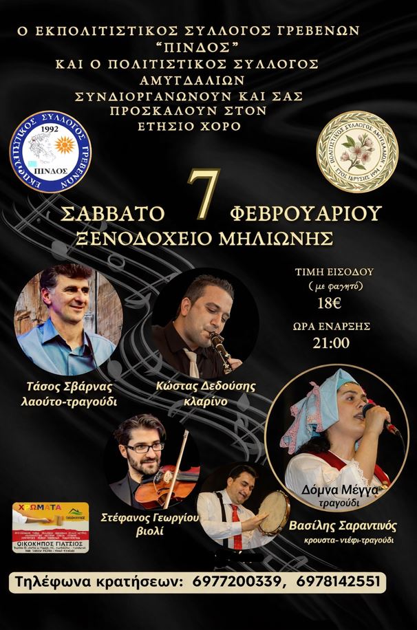 Με αίσθημα ευθύνης απέναντι στην κληρονομιά που μας παραδόθηκε, ο Πολιτιστικός Σύλλογος Αμυγδαλιών και ο Εκπολιτιστικός Σύλλογος Γρεβενών «ΠΙΝΔΟΣ» ενώνουν τις δυνάμεις τους σε ένα αντάμωμα ψυχής.