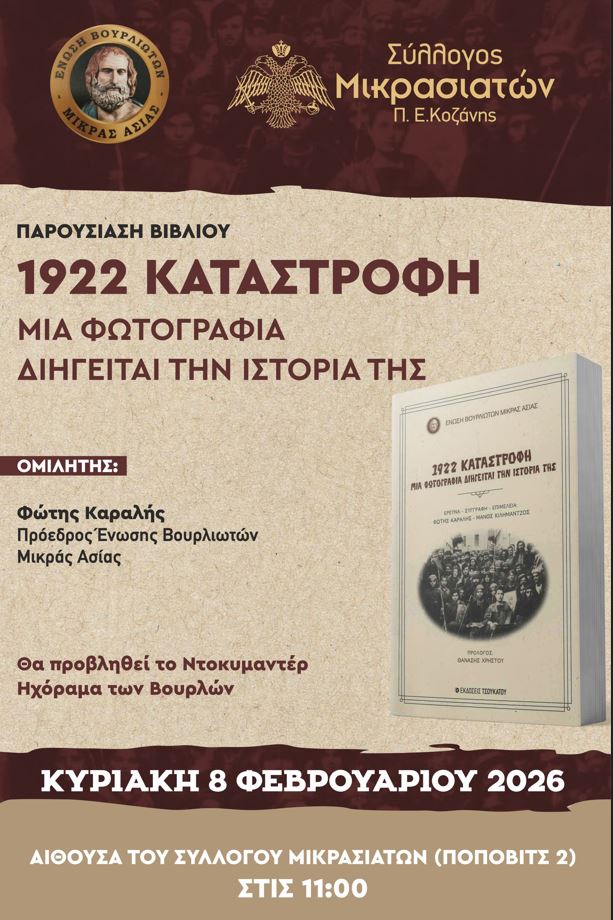 Μια ακόμη εκδήλωση του Μικρασιατικού Συλλόγου Π.Ε. Κοζάνης για τις αλησμόνητες Πατρίδες, στην αίθουσα του συλλόγου, στις 11:00 η ώρα την Κυριακή 8/2.