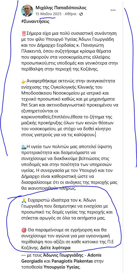 Στην Εορδαία, οι δεσμεύσεις μένουν στα δελτία Τύπου, οι φωτογραφίες στο αρχείο και τα προβλήματα στo νοσοκομείο (Μποδοσάκειο). Θυμάστε αυτή τη φωτογραφία, το Μάιο του 2025, με τον βουλευτή Κοζάνης Μ. Παπαδόπουλο, τον Δήμαρχο Εορδαίας Π. Πλακεντά και τον Υπουργό Υγείας Α. Γεωργιάδη; Χαμόγελα, χειραψίες κι ενημέρωση που «ξεχείλιζε» δεσμεύσεις για σημαντική ενίσχυση σε ιατρικό και νοσηλευτικό προσωπικό. Χθες (6/2/2026), ο ίδιος ο Δήμαρχος, στο Δημοτικό Συμβούλιο Εορδαίας, αναγνώρισε με τον πιο επίσημο τρόπο την υποστελέχωση, συμφωνώντας και στηρίζοντας ένα ψήφισμα (δείτε εδώ αναλυτικά), που ζητεί την άμεση πλήρη στελέχωση του Ακτινολογικού Τμήματος με μόνιμους ιατρούς αλλά και μαζικές προσλήψεις μόνιμου ιατρικού, νοσηλευτικού και λοιπού προσωπικού σε όλο το νοσοκομείο, καθώς κι απόρριψη των πρόχειρων λύσεων, των ιδιωτικοποιήσεων και των συμβάσεων με μπλοκάκι. Τελικά, όπως αποδεικνύεται, τον Μάιο του 2025 μάλλον συζητούσαν για κάποιο άλλο νοσοκομείο, διότι αν όλα είχαν πάρει τον δρόμο τους τότε, δεν θα χρειαζόταν, χθες, ψήφισμα, καταδίκες και εκ νέου αιτήματα για μαζικές προσλήψεις. Βέβαια, το «απολαυστικό» στην όλη ιστορία είναι εκείνη η φράση του Μ. Παπαδόπουλου: «Θα παραμείνουμε σε εγρήγορση». Μπορεί, η εγρήγορση αυτή, να μη φαίνεται στους διαδρόμους του νοσοκομείου, ωστόσο συνεχίζει να υπάρχει σε φωτογραφίες και σε δηλώσεις. Βλέπετε, δεν είναι στραβός ο γιαλός, ούτε φταίει η «κακιά» Χύτρα, που καταγράφει την πραγματικότητα. Απλώς οι αντιφάσεις βγαίνουν μόνες τους στην επιφάνεια κι η κριτική είναι η φυσική συνέπεια όσων έχουν προηγηθεί. Και μιας που μπαίνουμε σε αποκριάτικους ρυθμούς, ίσως ήρθε η ώρα αυτή η ιστορία να αποκτήσει και το άρμα που της αξίζει. Ένα άρμα σε μορφή νοσοκομείου (Μποδοσάκειου) με τις πόρτες ανοιχτές αλλά στο εσωτερικό με άδειες καρέκλες και πάνω τους καρτελάκια, όπως «ακτινολόγος», «νοσηλευτής», «ιατρός εφημερίας» κτλ.. Στην οροφή του άρματος, με αποκριάτικες μάσκες, ο Μ. Παπαδόπουλος, ο Π. Πλακεντάς και ο Α. Γεωργιάδης να χαιρετούν το πλήθος κρατώντας πλακάτ που γράφουν: «Προσωπικό προσεχώς – Σε φάση εγρήγορσης». Κι όταν ένα αποκριάτικο άρμα μοιάζει τόσο πολύ με την καθημερινότητα, το πρόβλημα δεν είναι το άρμα είναι η πραγματικότητα που το ενέπνευσε.