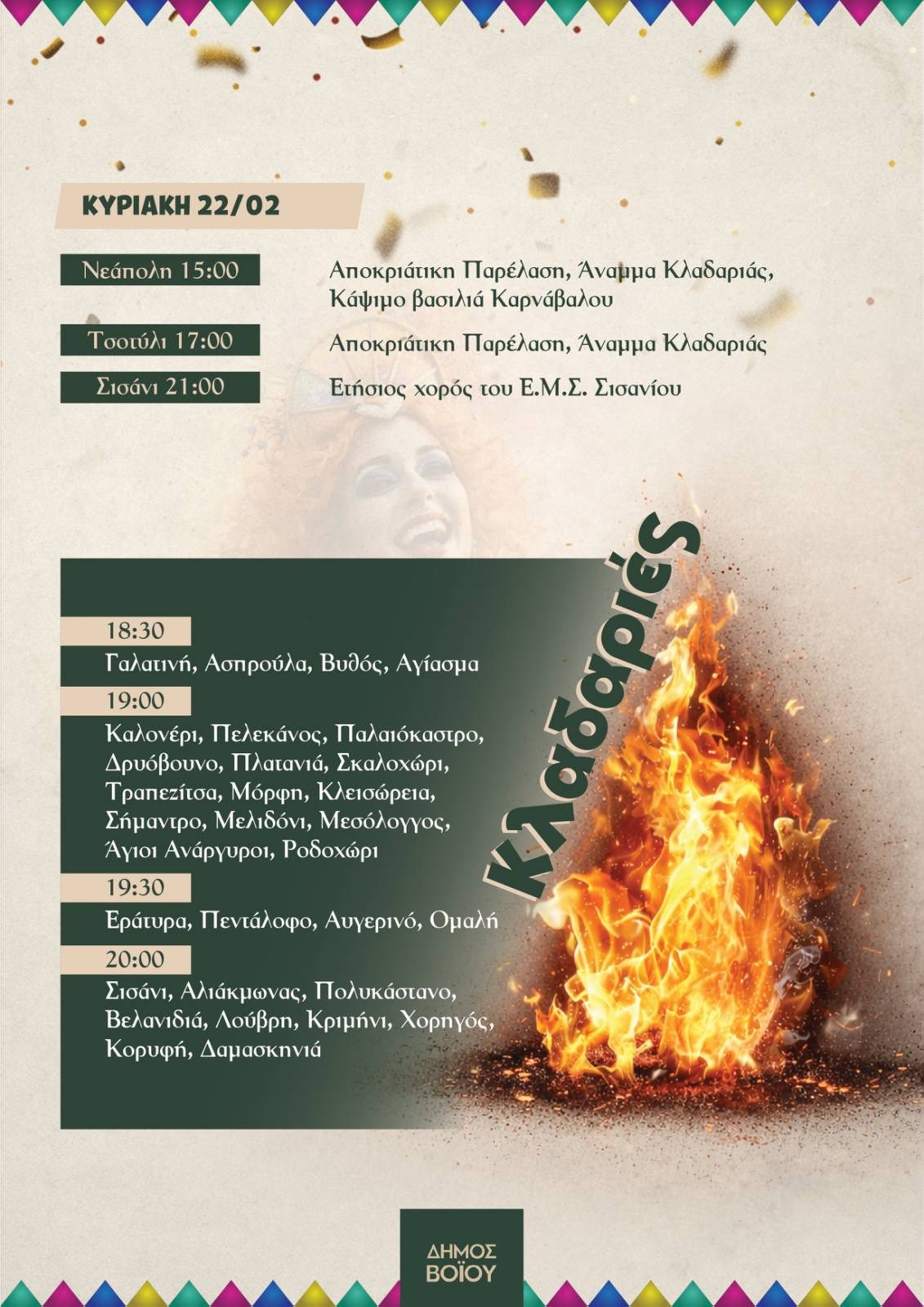 Με ένα πλούσιο εορταστικό πρόγραμμα υποδέχεται την Αποκριά ο Δήμος Βοΐου! Εκδηλώσεις θα πραγματοποιηθούν σε όλες τις Δημοτικές Κοινότητες με ημέρα έναρξης την Τσικνοπέμπτη!