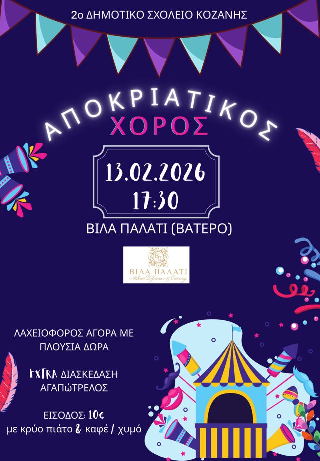 Αποκριάτικος χορός του 2ου Δημοτικού Σχολείου Κοζάνης, την Παρασκευή 13 Φεβρουαρίου
