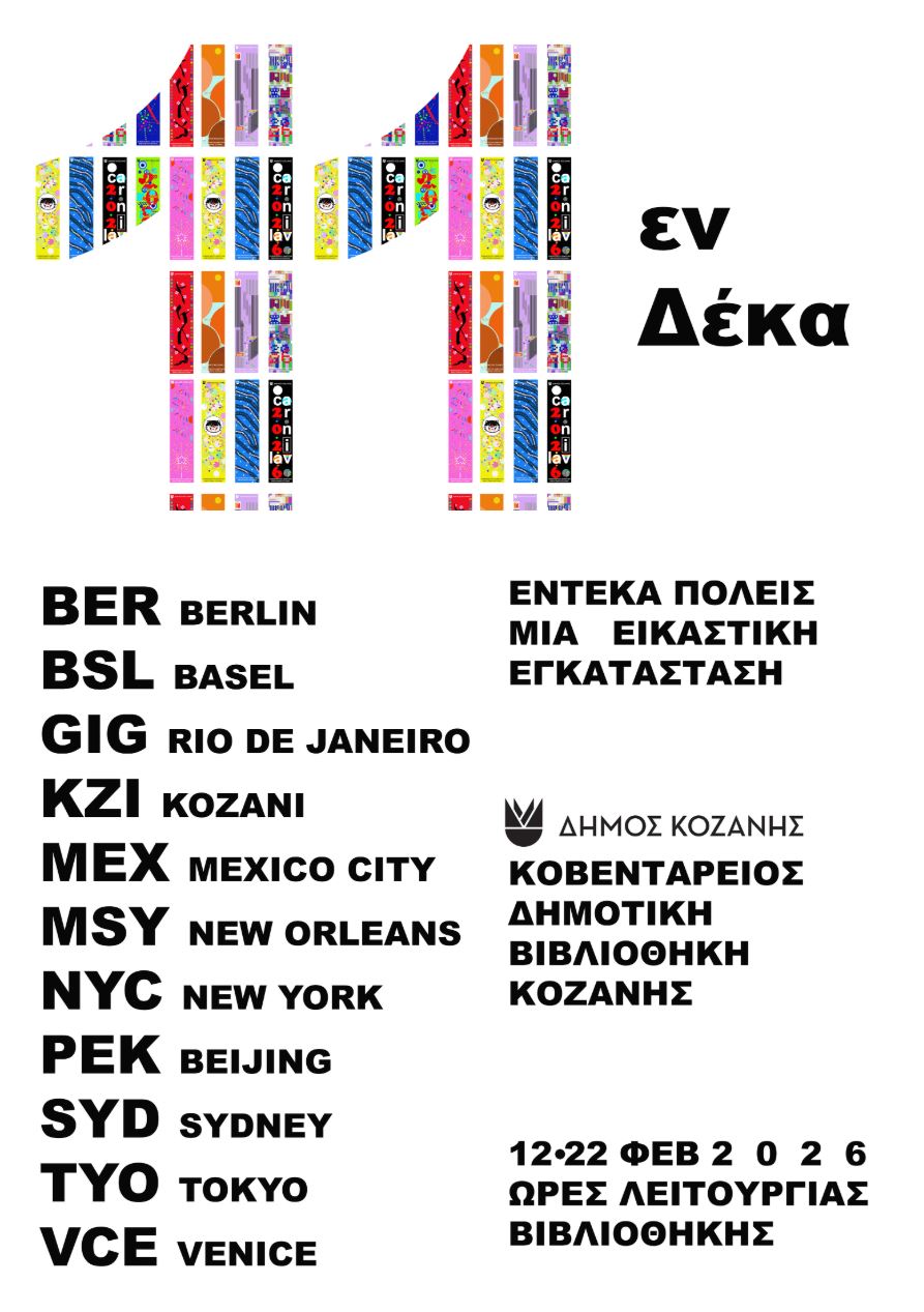 εν Δέκα: Έντεκα Πόλεις, Μία Εικαστική Εγκατάσταση / Στην Κοβεντάρειο Δημοτική Βιβλιοθήκη Κοζάνης.