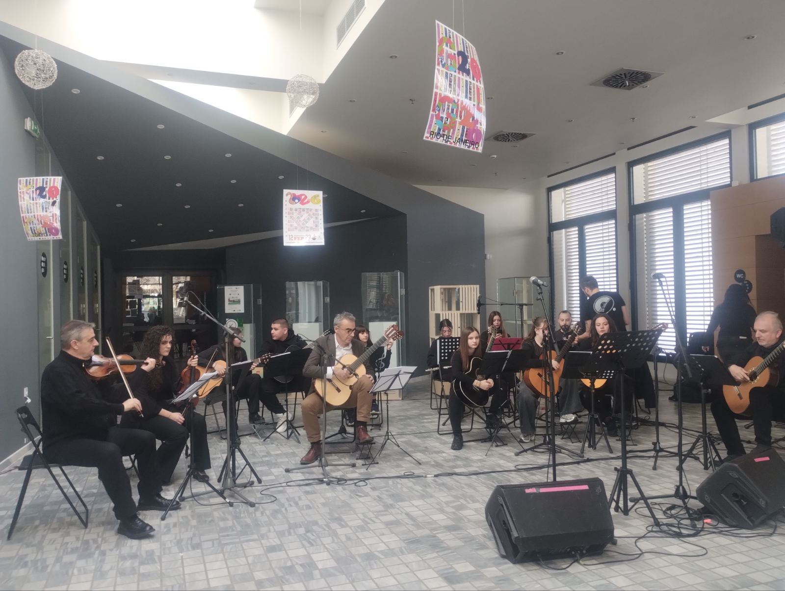 Το Μουσικό Σχολείο Σιάτιστας συμμετείχε με ιδιαίτερη χαρά σε μια εκδήλωση αφιερωμένη στην ελληνική γλώσσα, η οποία αποτελεί θεμέλιο του πολιτισμού και ανεξάντλητη πηγή έμπνευσης για τη μουσική και τις τέχνες. Η παρουσία και η καλλιτεχνική συμβολή των μαθητών και των εκπαιδευτικών του σχολείου ανέδειξε τον ουσιαστικό ρόλο της μουσικής ως μέσου έκφρασης, δημιουργίας και πολιτισμικού διαλόγου, επιβεβαιώνοντας τον παιδαγωγικό και καλλιτεχνικό χαρακτήρα του σχολείου μας.