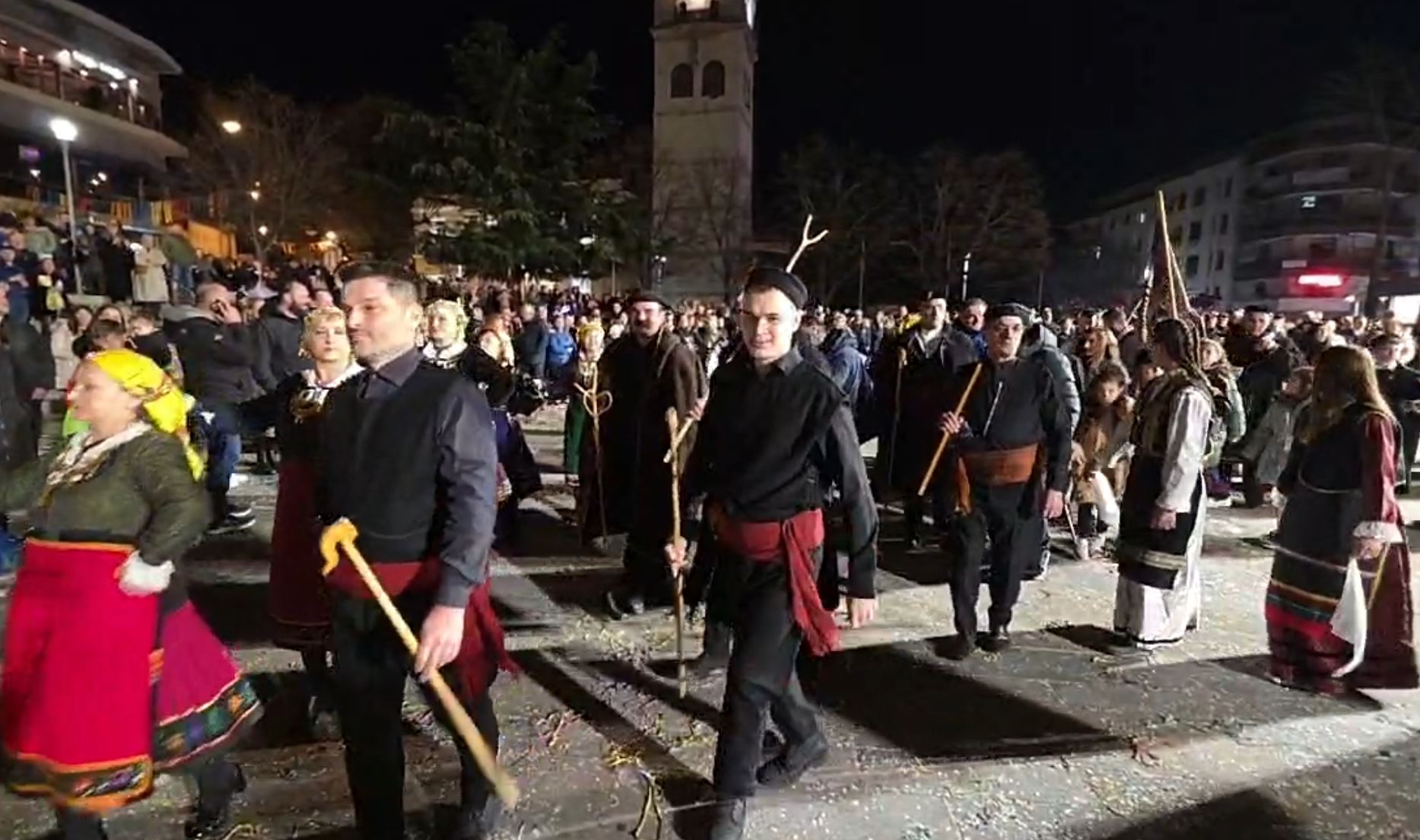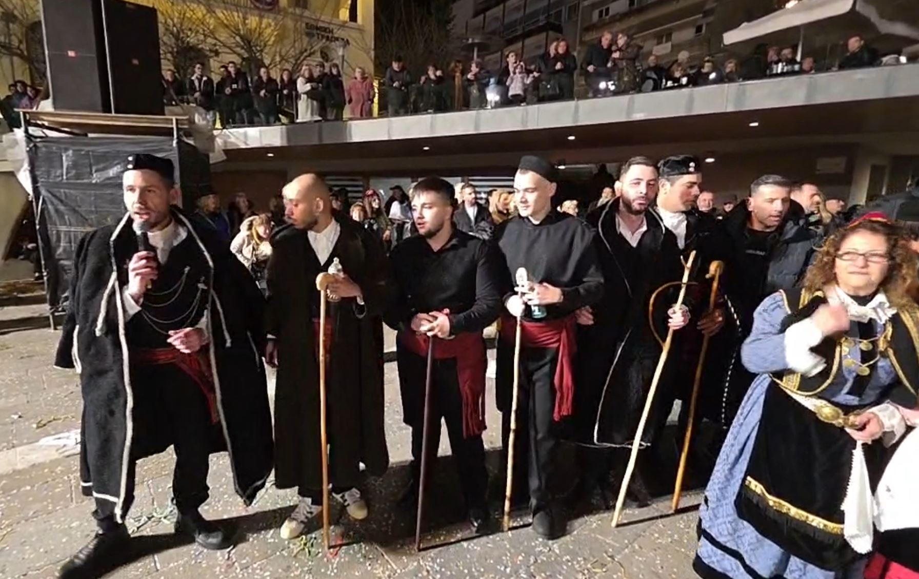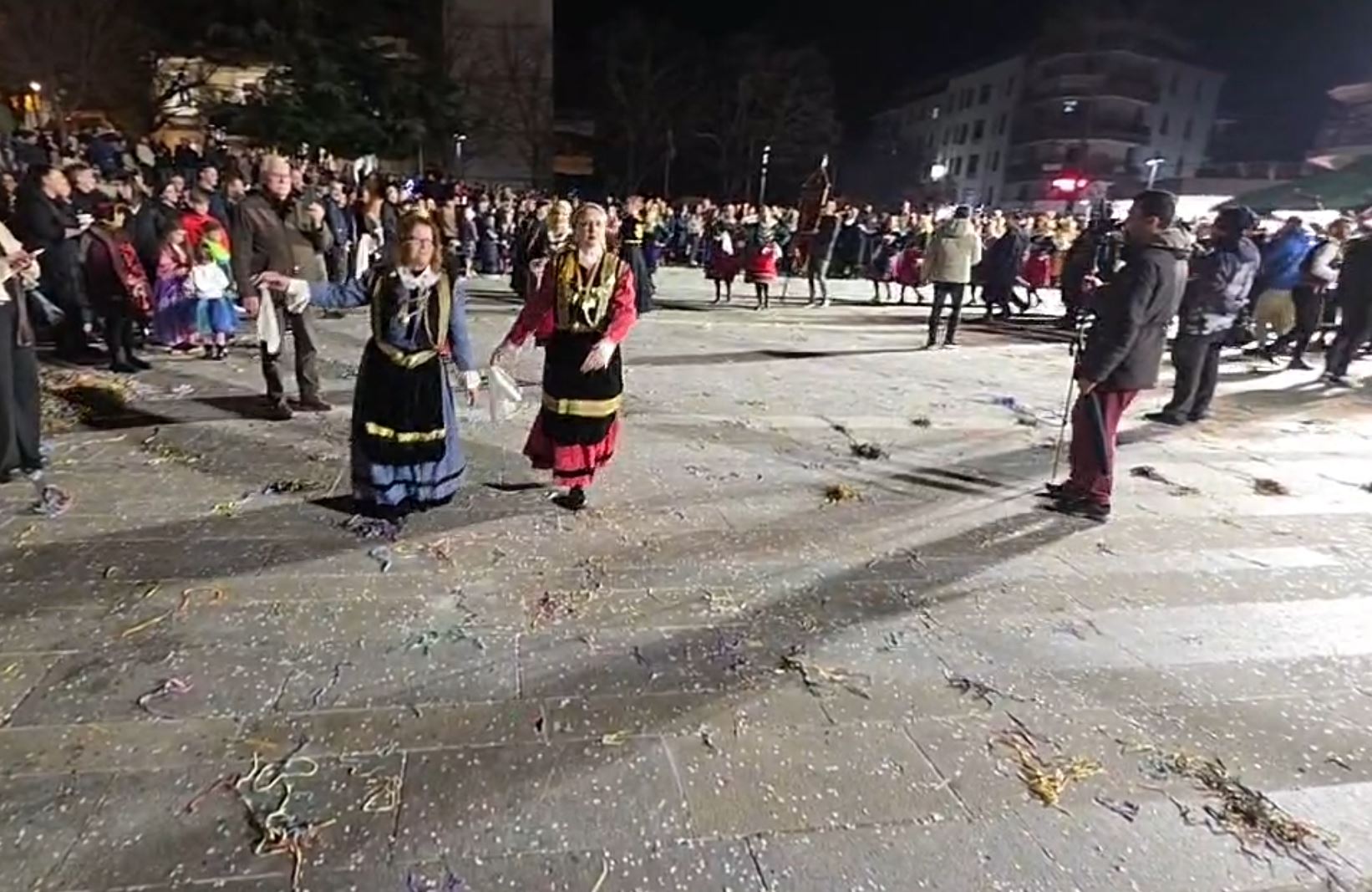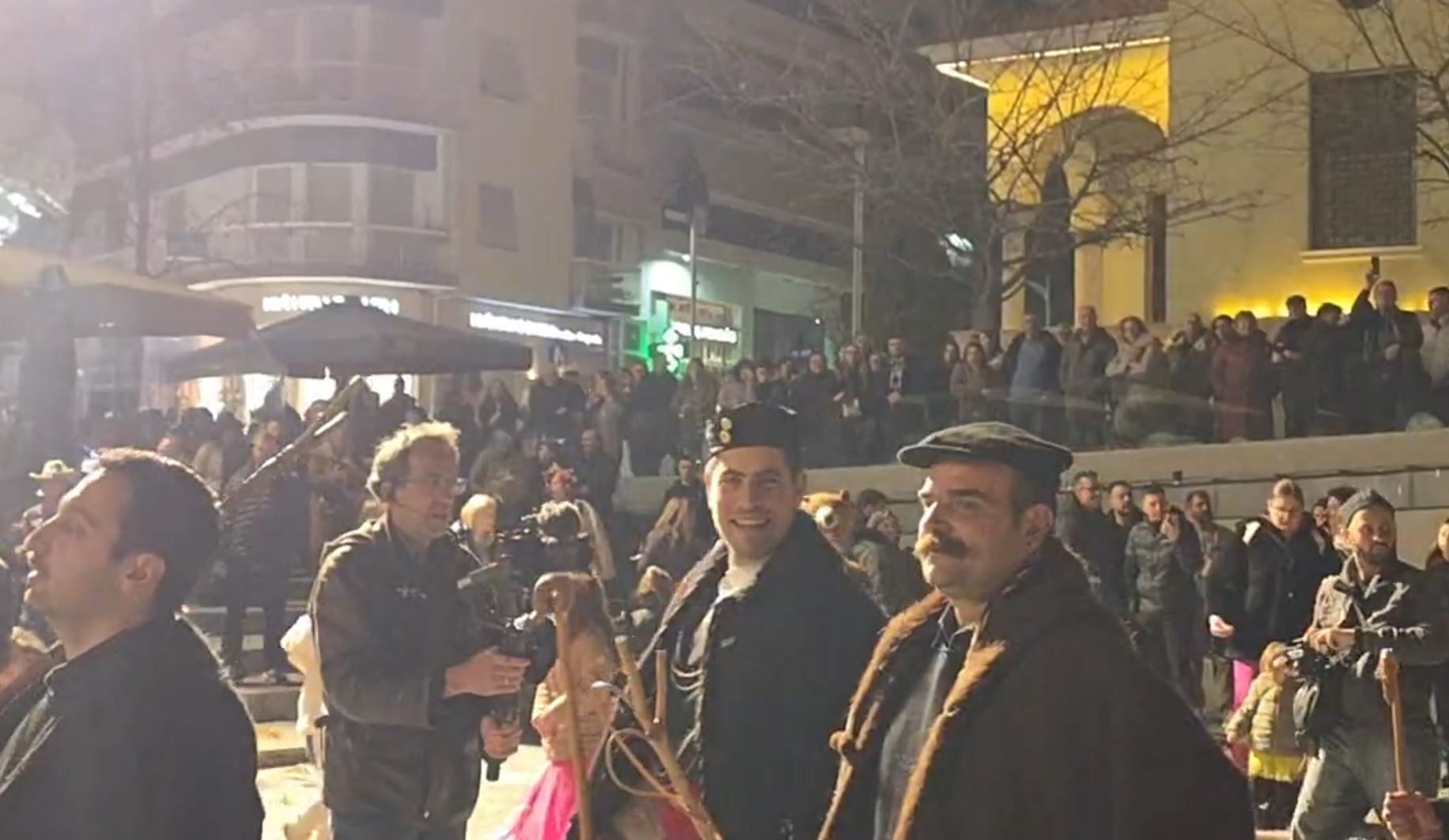 Η επίσημη έναρξη της Κοζανίτικης Αποκριάς από τον Δήμαρχο Κοζάνης Γιάννη Κοκκαλιάρη και η εμφάνιση του Φανού Πηγάδ΄ από το Κεραμαριό, στην κεντρική πλατεία Κοζάνης, το βράδυ της Πέμπτης 12/2.