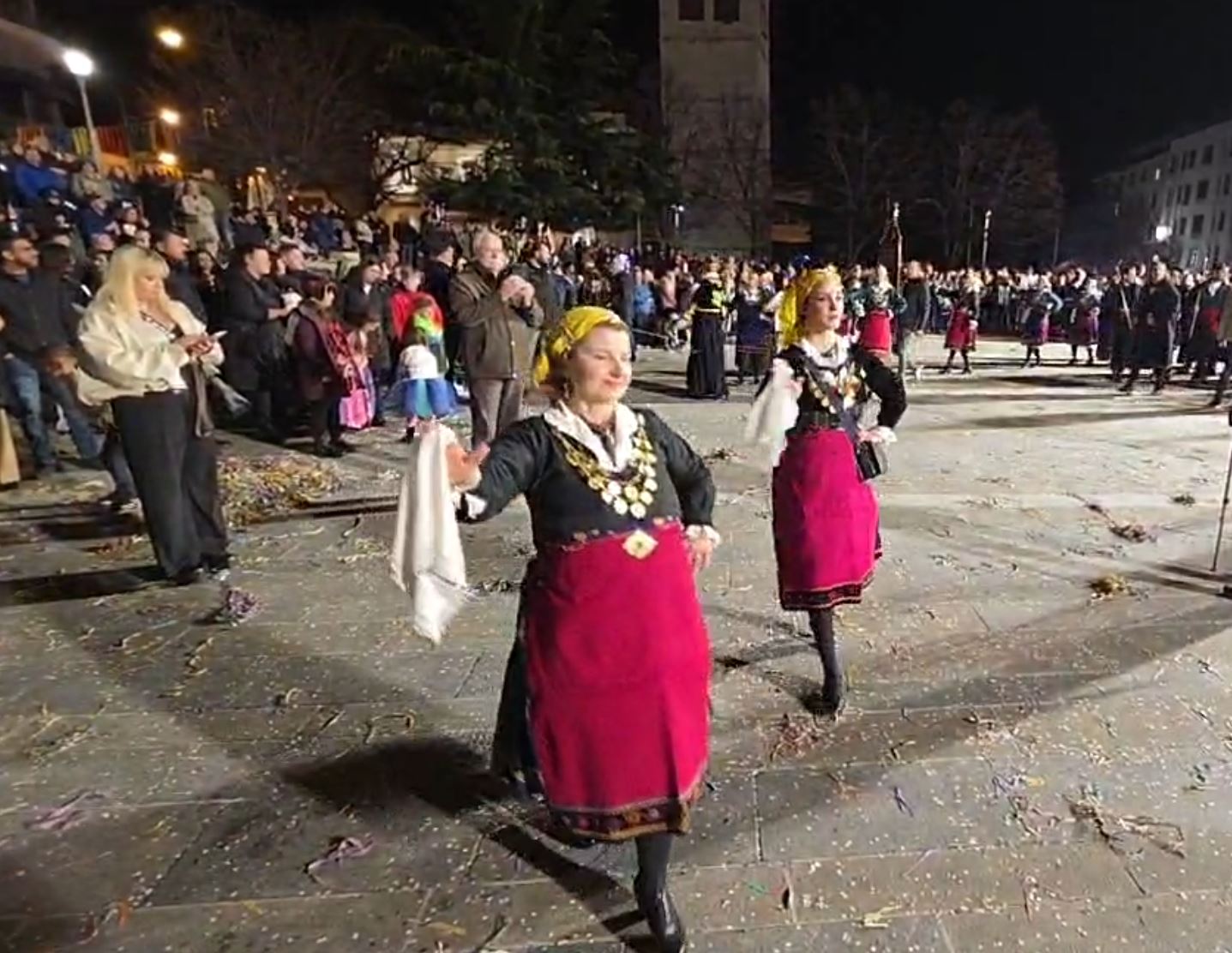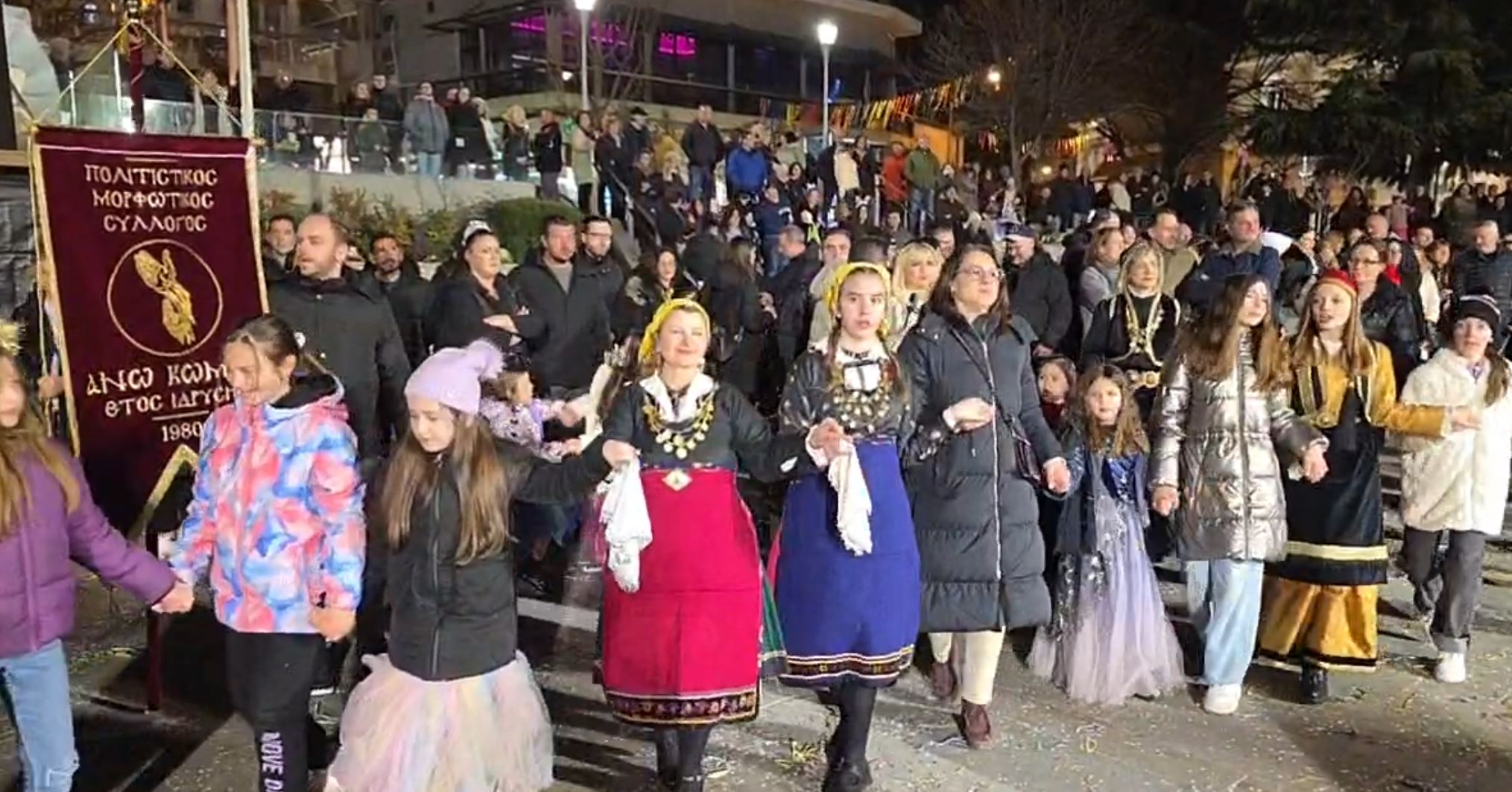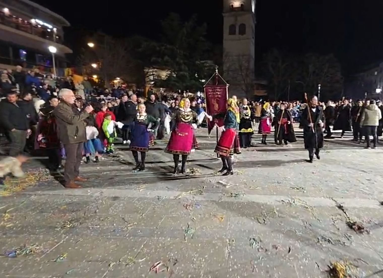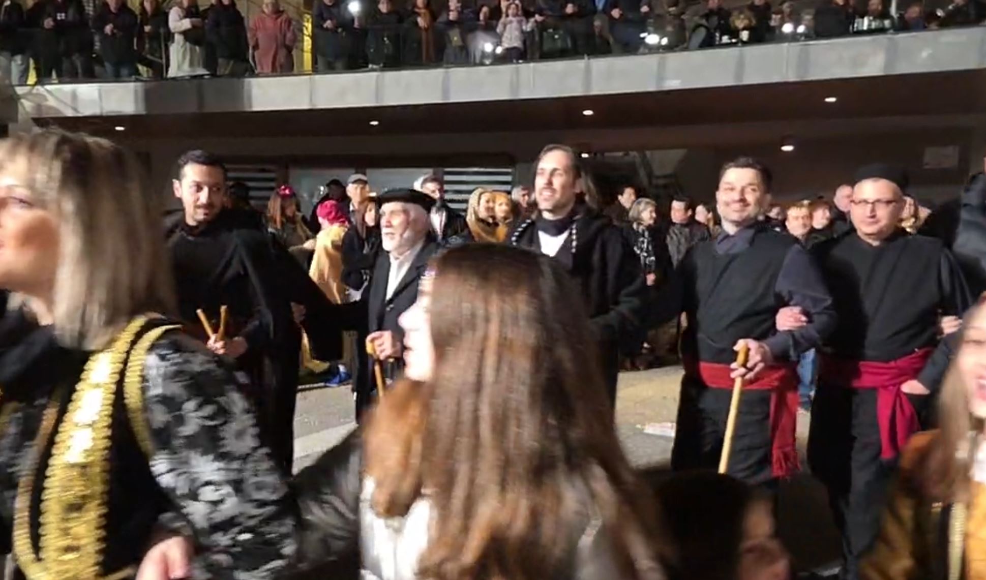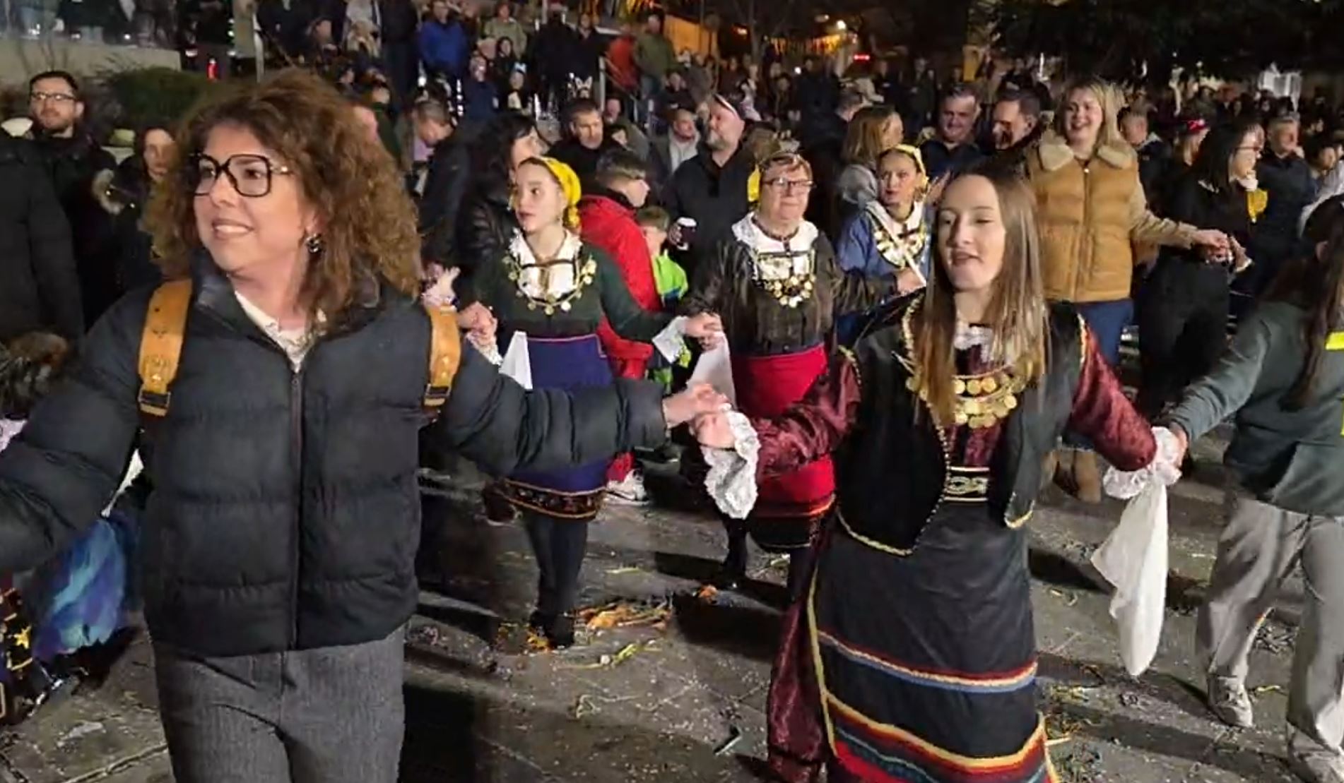 Η επίσημη έναρξη της Κοζανίτικης Αποκριάς από τον Δήμαρχο Κοζάνης Γιάννη Κοκκαλιάρη και η εμφάνιση του Φανού Πηγάδ΄ από το Κεραμαριό, στην κεντρική πλατεία Κοζάνης, το βράδυ της Πέμπτης 12/2.