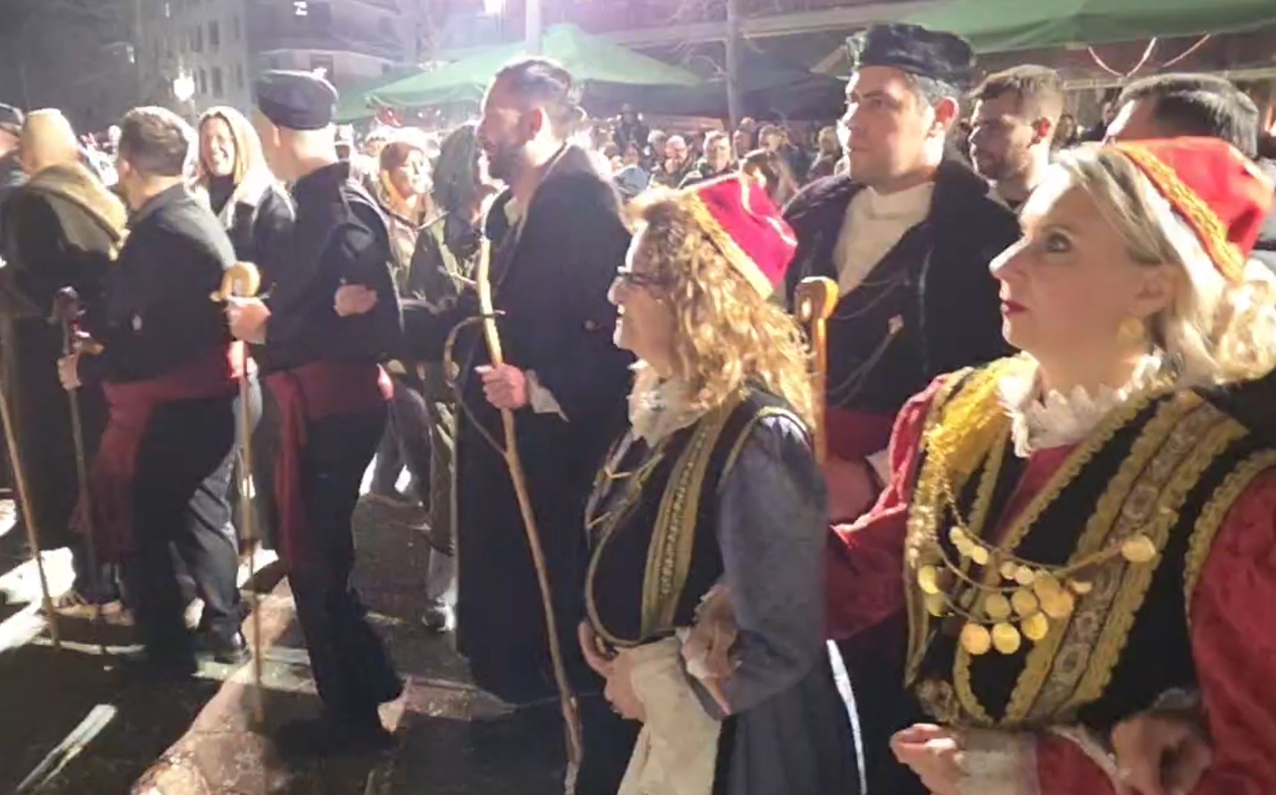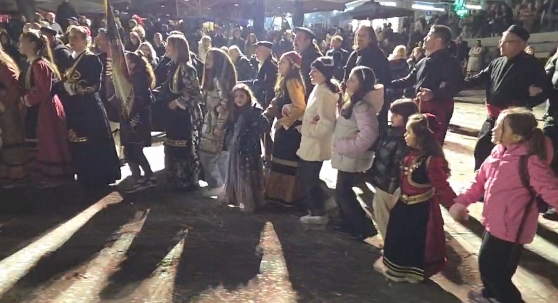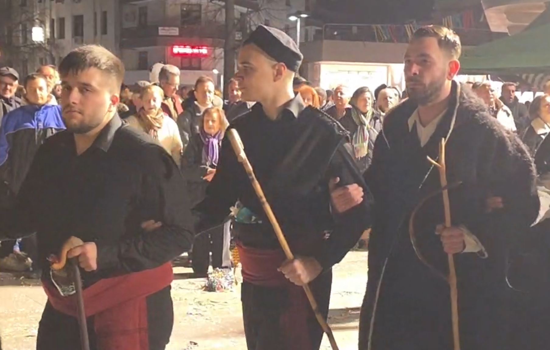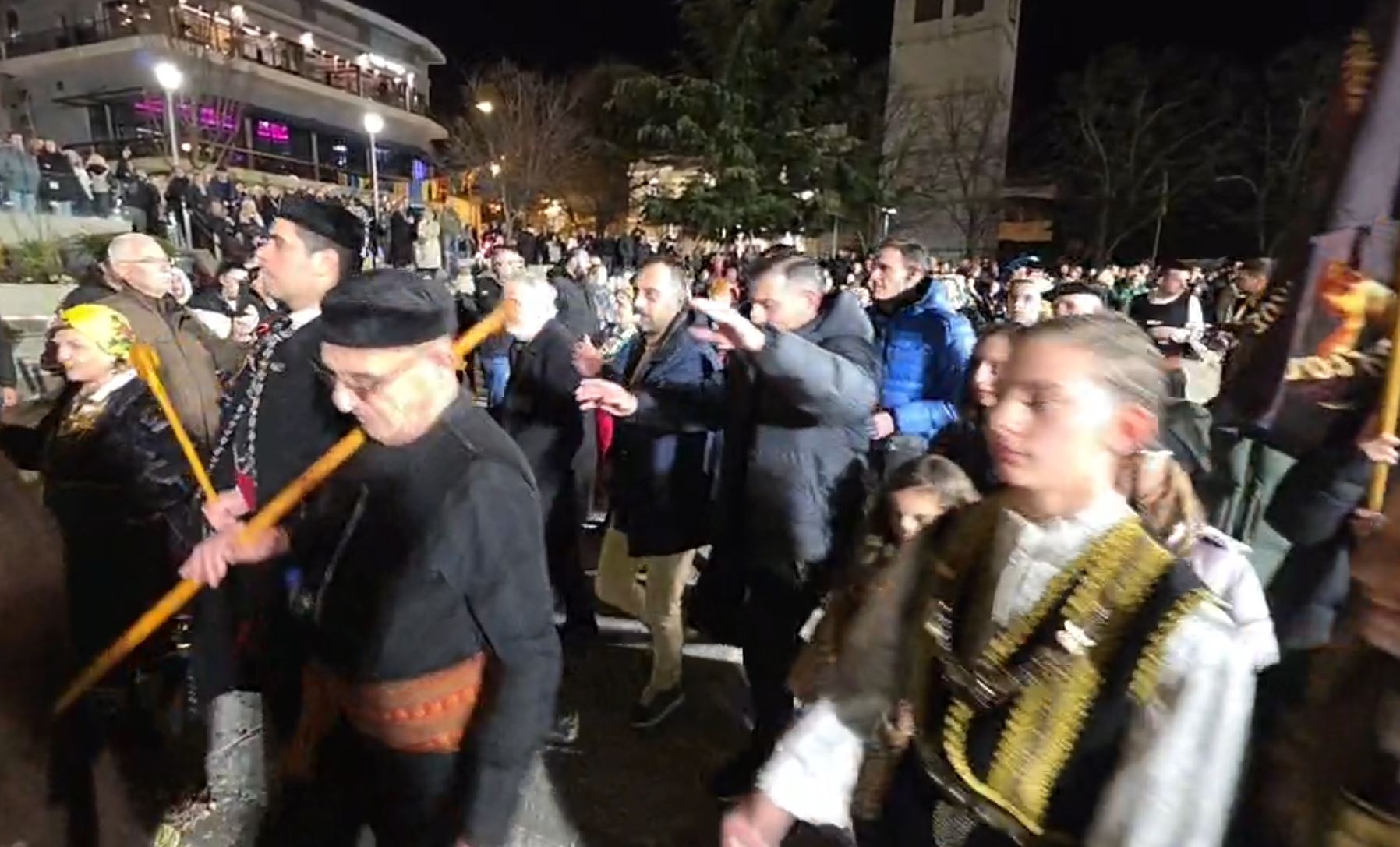 Η επίσημη έναρξη της Κοζανίτικης Αποκριάς από τον Δήμαρχο Κοζάνης Γιάννη Κοκκαλιάρη και η εμφάνιση του Φανού Πηγάδ΄ από το Κεραμαριό, στην κεντρική πλατεία Κοζάνης, το βράδυ της Πέμπτης 12/2.