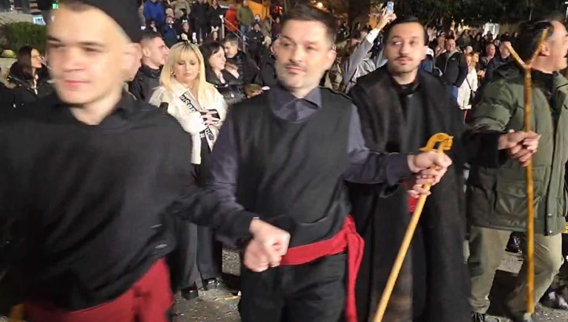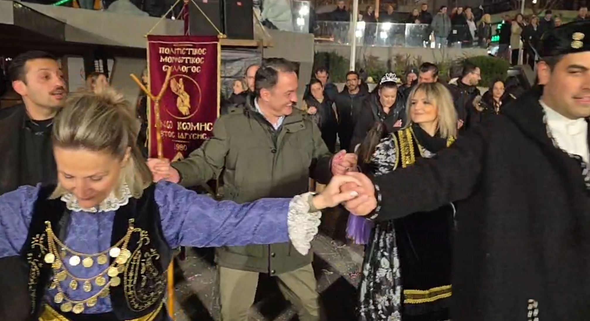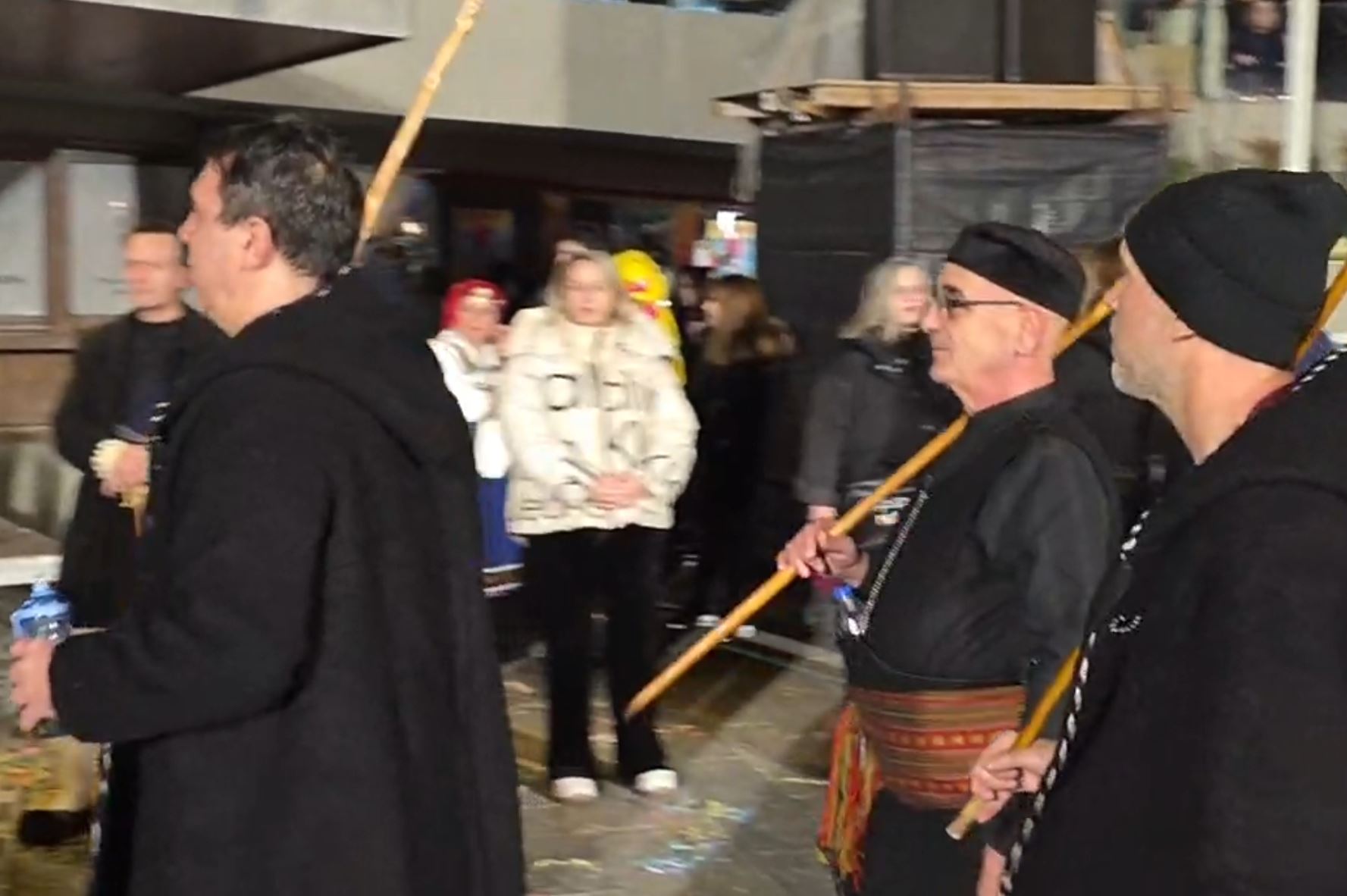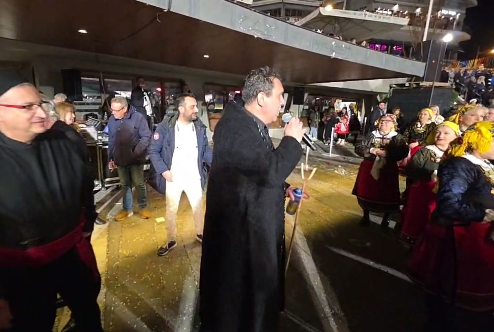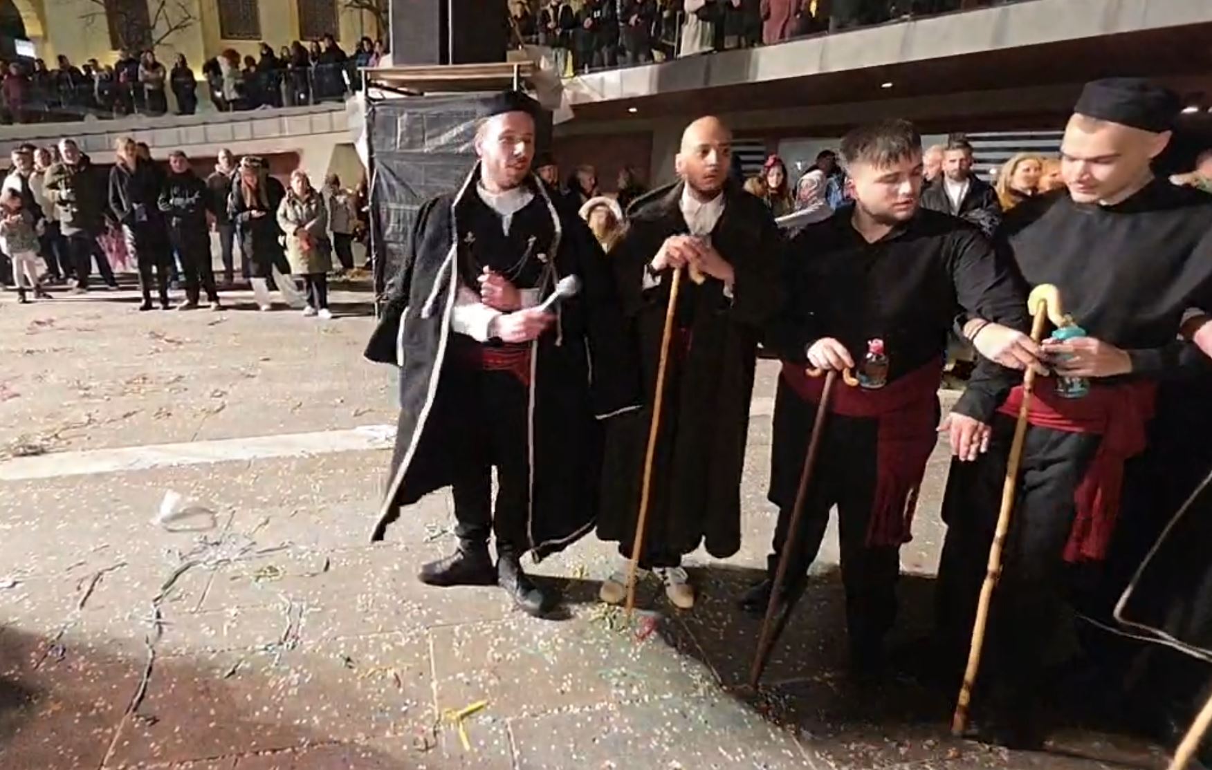 Η επίσημη έναρξη της Κοζανίτικης Αποκριάς από τον Δήμαρχο Κοζάνης Γιάννη Κοκκαλιάρη και η εμφάνιση του Φανού Πηγάδ΄ από το Κεραμαριό, στην κεντρική πλατεία Κοζάνης, το βράδυ της Πέμπτης 12/2.