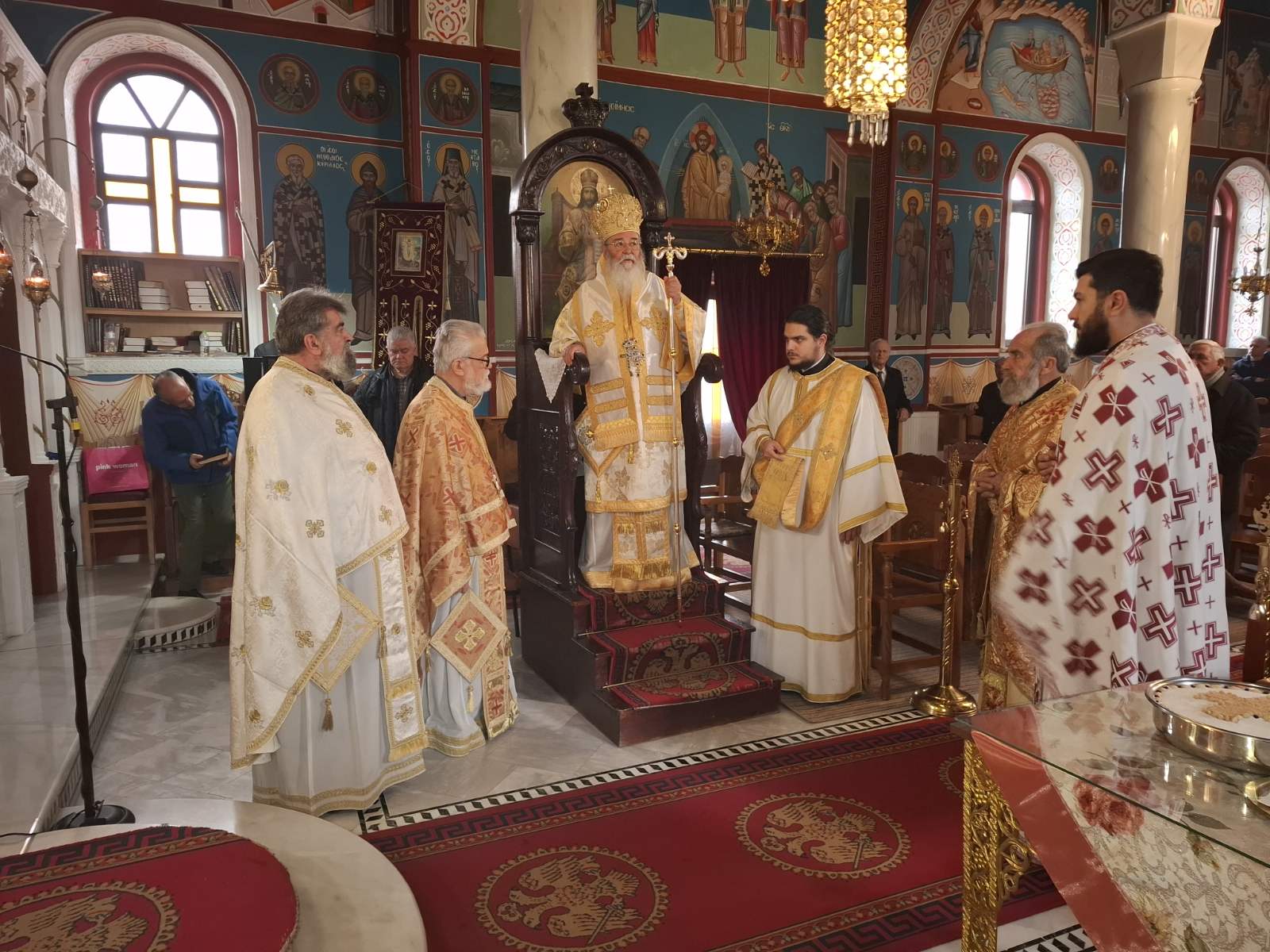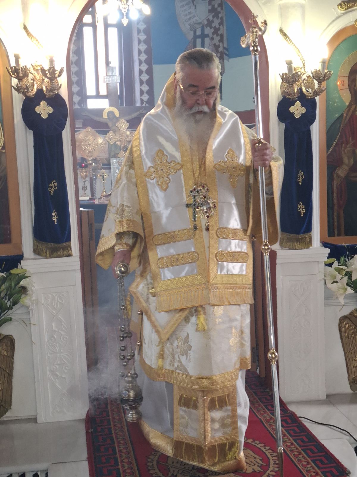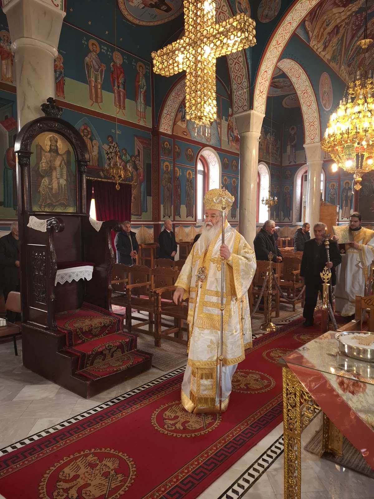 Τον Σεβασμιώτατο Μητροπολίτη κ. Παύλο περιστοίχισαν οι πατέρες: Πρωτοπ. Κωνσταντίνος Κώστας αρχιερατικός Α.Π.Β., Οικον. Αθανάσιος Παπαϊωάννου (Ίμερα και Αύρα), Οικον. Λάζαρος Βασδέκης (Λεύκαρα, Νεράιδα και Ροδίτης), Πρεσβ. Κωνσταντίνος Παραλής (Καστανιά και Λάβα), Διάκονος Άνθιμος Ποτουριάδης. Διακονητής ο Παναγιώτης Μαργαρίτης.