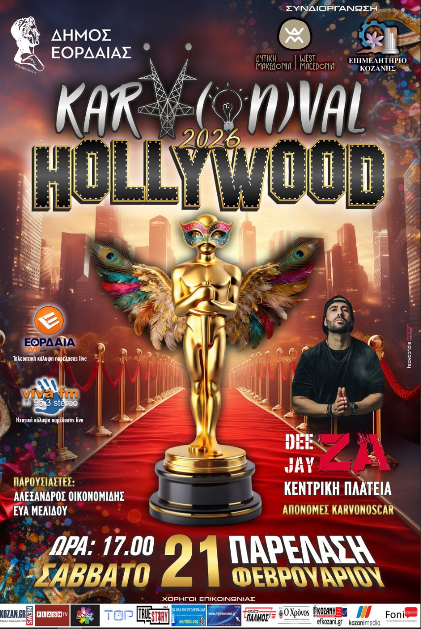 Ο Δήμος Εορδαίας προσκαλεί δημότες και επισκέπτες στο KarVonval HOLLYWOOD 2026, μια θεματική καρναβαλική διοργάνωση εμπνευσμένη από τη λάμψη και τη μαγεία του κινηματογράφου, που μετατρέπει την πόλη σε σκηνικό Hollywood.