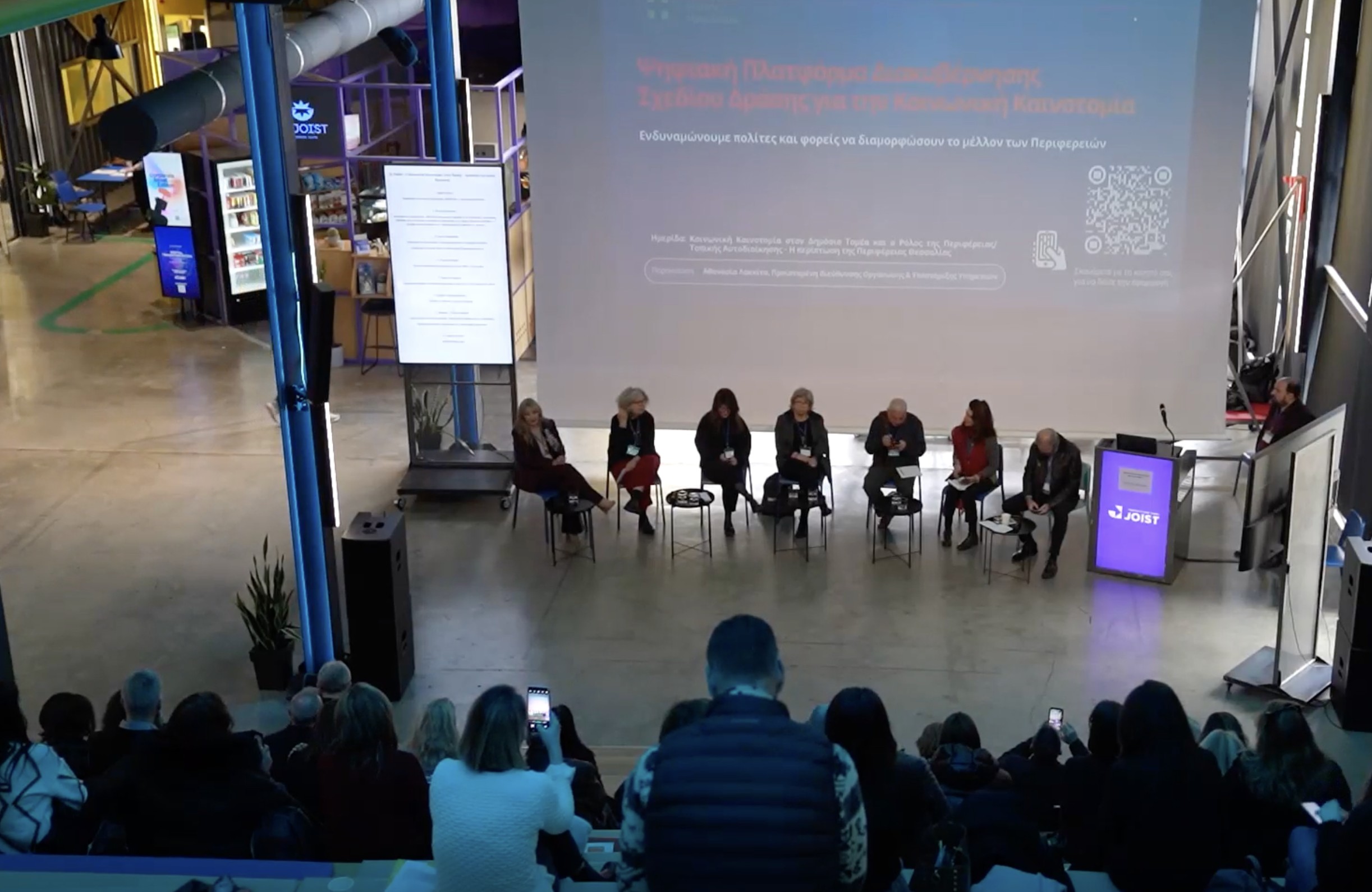 Ημερίδα για την Κοινωνική Καινοτομία την οποία συνδιοργάνωσε η Περιφέρεια Θεσσαλίας μαζί με τη Γενική Γραμματεία Δημόσιας Διοίκησης του Υπουργείου Εσωτερικών (ΥΠΕΣ) και το Ινστιτούτο Τεκμηρίωσης Έρευνας και Καινοτομιών του Εθνικού Κέντρου Δημόσιας Διοίκησης και Αυτοδιοίκησης, στο πλαίσιο του Εθνικού Σχεδίου Δράσης για την Καινοτομία στον Δημόσιο Τομέα, το οποίο συντονίζει το Τμήμα Καινοτομίας και Βέλτιστων Πρακτικών του ΥΠΕΣ πραγματοποιήθηκε στο Πάρκο Καινοτομίας JOIST στη Λάρισα.