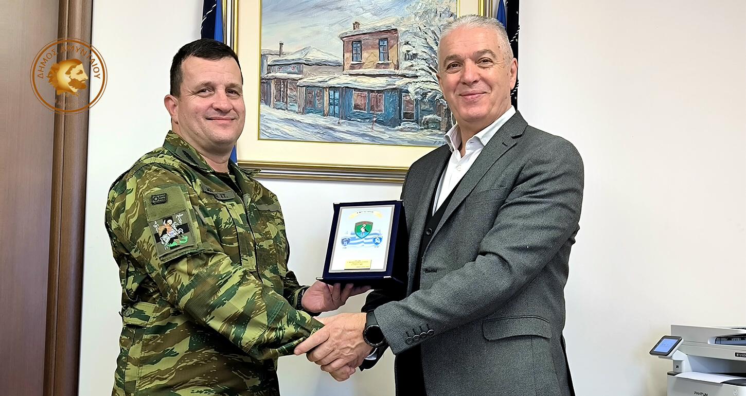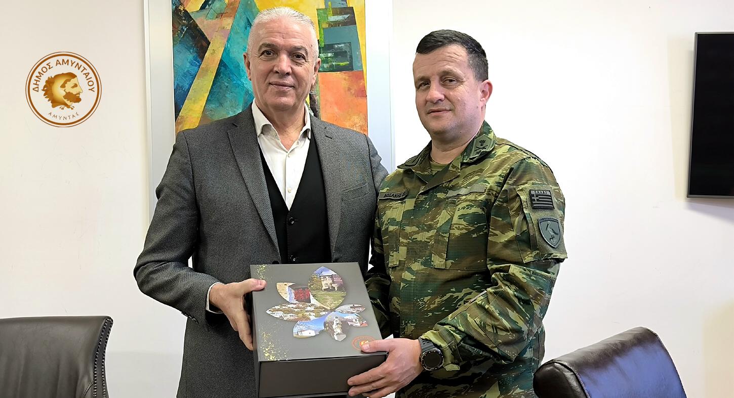 Εθιμοτυπική επίσκεψη πραγματοποίησε το πρωί της Τετάρτης 19 Φεβρουαρίου 2026, ο Διοικητής της 9ης Ταξιαρχίας Μ.Π., Ταξίαρχος Στέφανος Δοξάκης, στον Δήμαρχο Αμυνταίου Ιωάννη Λιάση, στο Δημαρχείο Αμυνταίου.