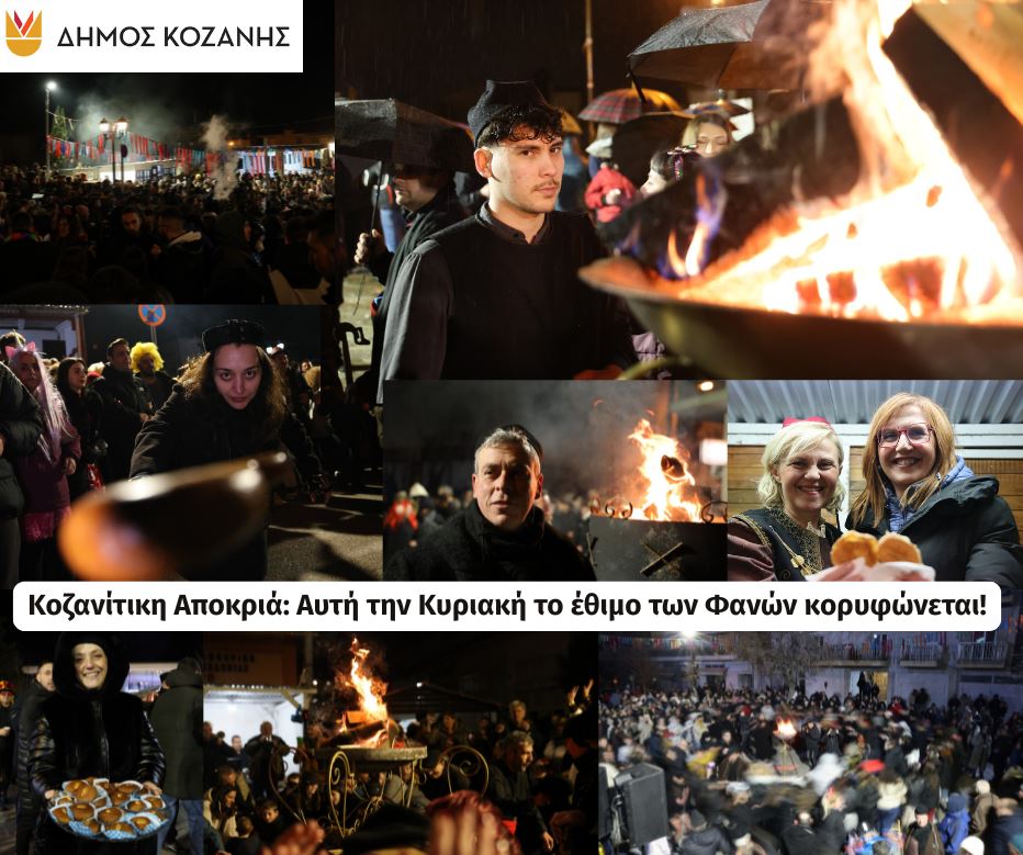 Κορυφώνεται την Κυριακή της Μεγάλης Αποκριάς 22 Φεβρουαρίου 2026, το σπουδαίο και διαχρονικό έθιμο των Φανών της Κοζανίτικης Αποκριάς καθώς στις 8 και μισή το βράδυ θα ανάψουν ταυτόχρονα όλοι οι Φανοί σε δρόμους και γειτονιές της πόλης και μιλάμε για τους εξής: