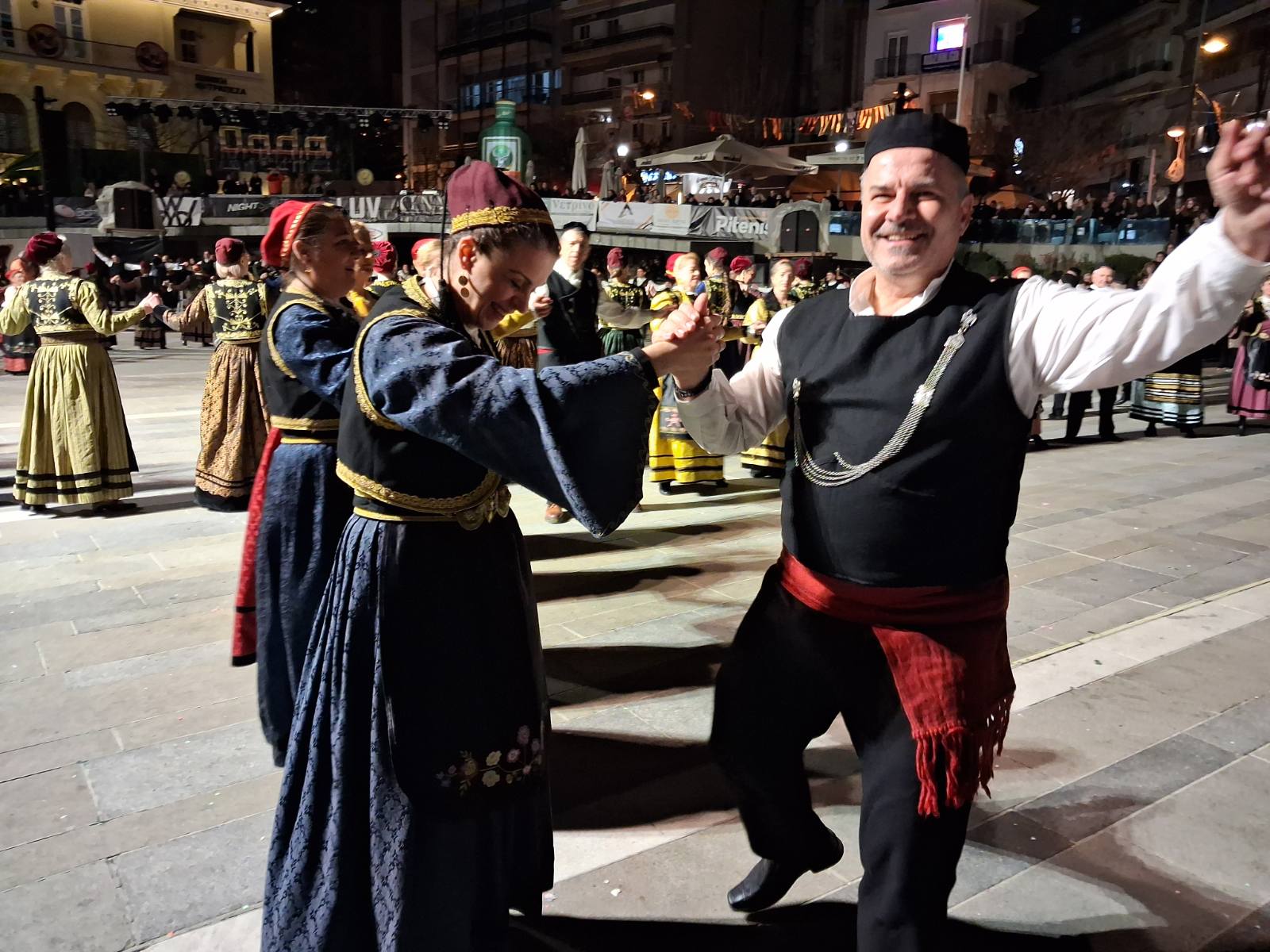 Το βράδυ του Σαββάτου 21 Φεβρουαρίου, στο πλαίσιο των αποκριάτικων εκδηλώσεων, εμφανίστηκαν στην Κεντρική Πλατεία Κοζάνης τα Χορευτικά Τμήματα Πολιτιστικών Συλλόγων της πόλης, παρουσιάζοντας ένα πλούσιο πρόγραμμα παραδοσιακών χορών.
