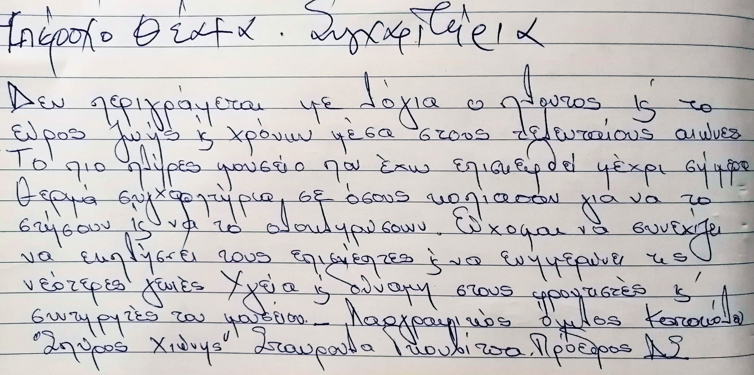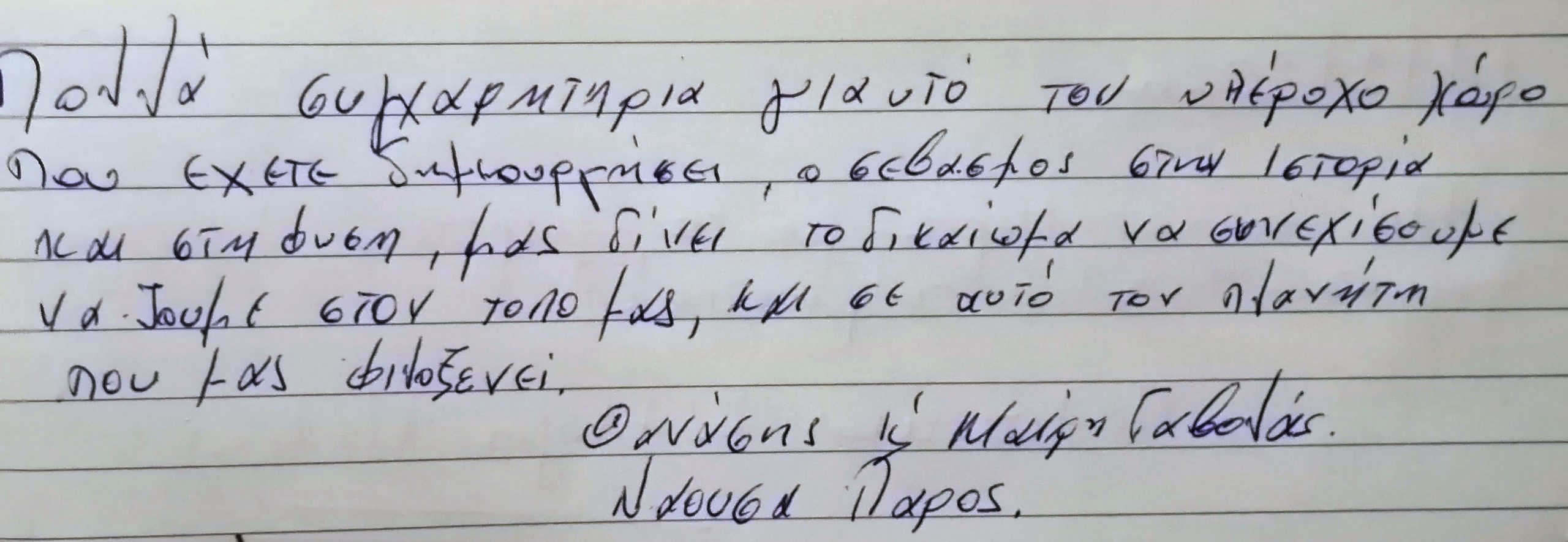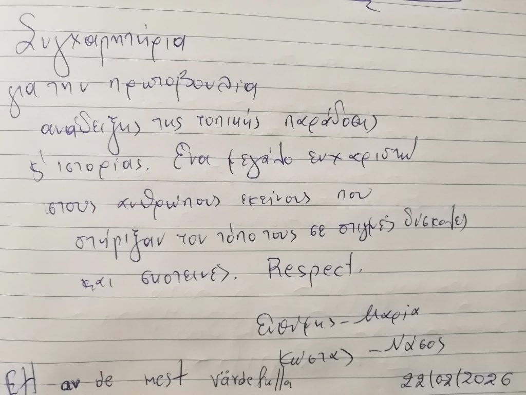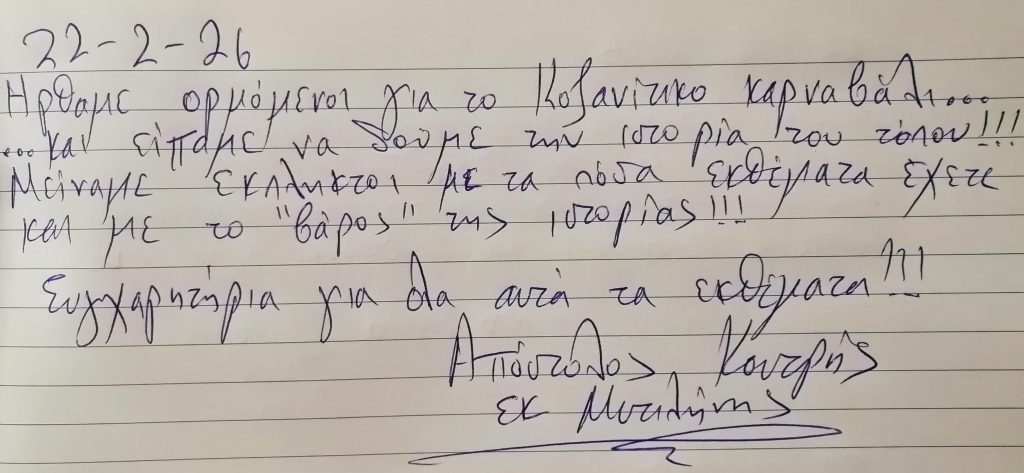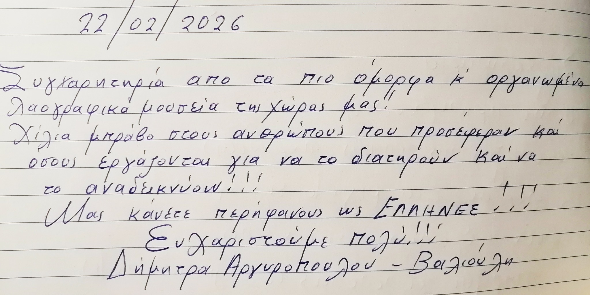Οι εντυπώσεις μοναδικές. Ένα δείγμα αυτών καταγράφηκε στο βιβλίο επισκεπτών.
