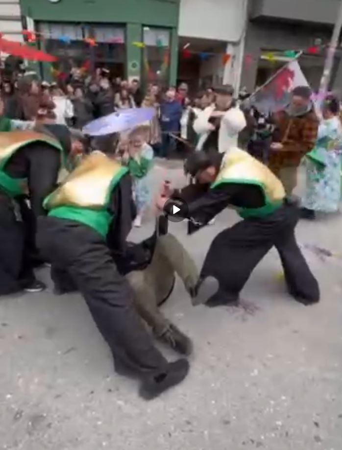 Στο πλαίσιο της Αποκριάτικης Παρέλασης, το μεσημέρι της Κυριακής στην Κοζάνη, δεν έλειψαν οι ευφάνταστες και χιουμοριστικές στιγμές! Ανάμεσα στα δρώμενα, μια ομάδα «σαμουράι» από τη Μακεδονική Δύναμη πρωταγωνίστησαν σε μια ξεκαρδιστική σκηνή, ρίχνοντας θεατρικά κάτω τον Δήμαρχο Κοζάνης, μέσα σε γέλια και χειροκροτήματα του κόσμου. Η σκηνή, στο πνεύμα των ημερών, αποδεικνύοντας πως η Αποκριά είναι γιορτή χαράς, σάτιρας και κεφιού!