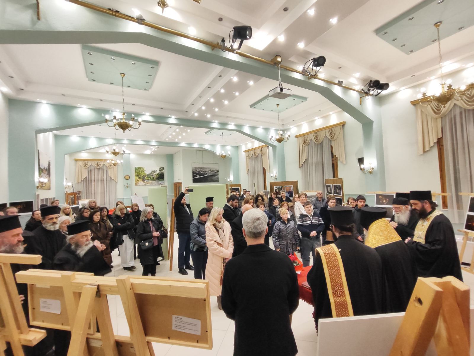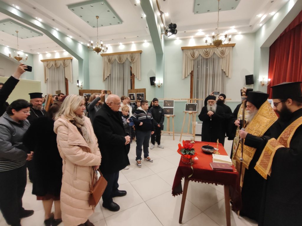 Τον αγιασμό της έναρξης της έκθεσης τέλεσε ο Σεβασμιώτατος Ποιμενάρχης μας, πλαισιούμενος από τον ομιλητή του Κατανυκτικού Εσπερινού, Γέροντας Νεκτάριος Μουλατσιώτης, καθώς και τον Διευθυντή της Αγιορειτική Εστία, κ. Αναστάσιο Ντούρο.