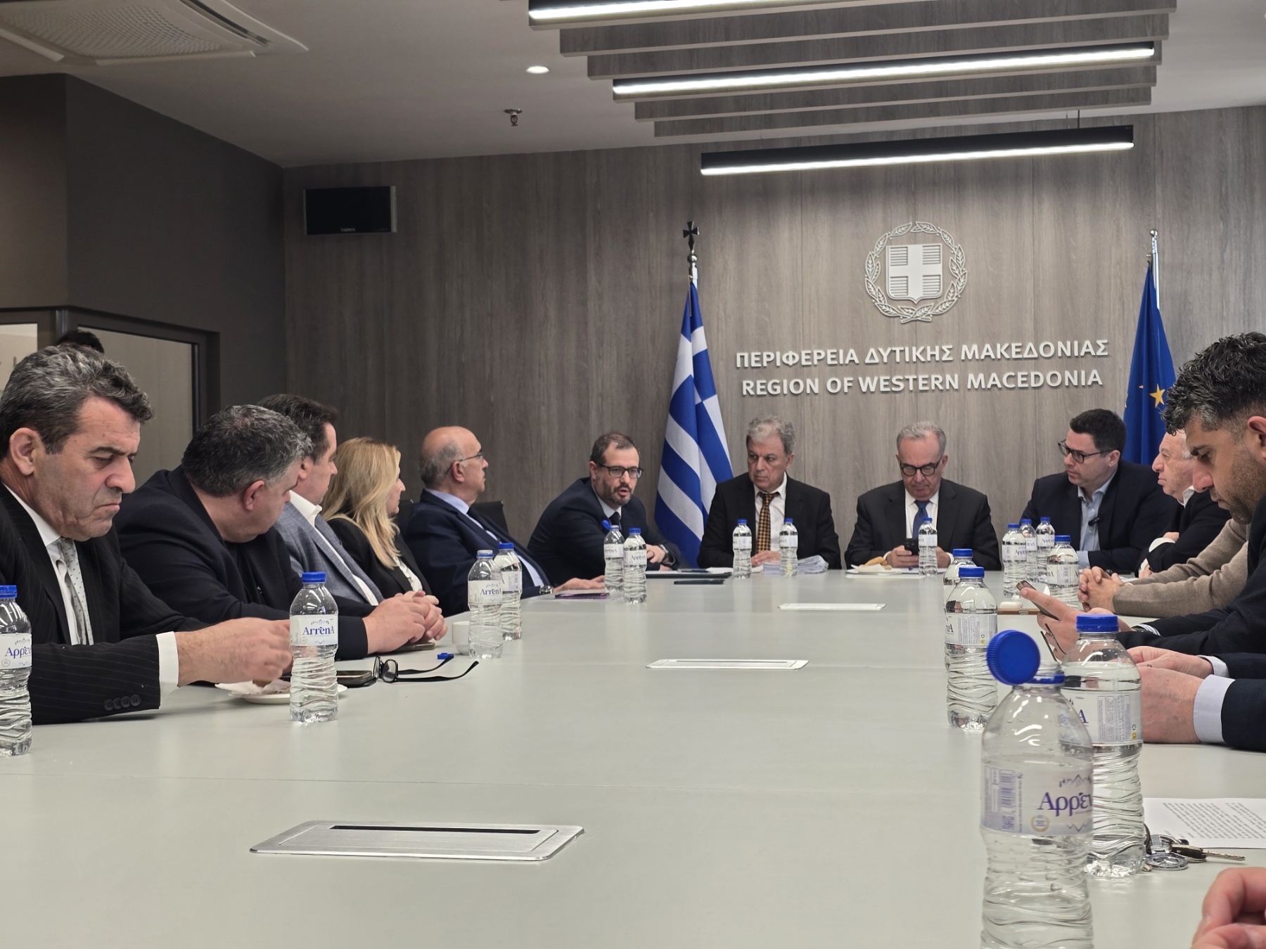 Κυβερνητικό κλιμάκιο αποτελούμενο από τον Αναπληρωτή Υπουργό Εθνικής Οικονομίας & Οικονομικών Νίκο Παπαθανάση, τον Υφυπουργό στον Πρωθυπουργό Θανάση Κοντογεώργη, τον Υφυπουργό Περιβάλλοντος & Ενέργειας Νίκο Τσάφο και τον Γενικό Γραμματέα Εργασιακών Σχέσεων του Υπουργείου Εργασίας & Κοινωνικής Ασφάλισης Nίκο Μηλαπίδη και τον Διοικητή της Ειδικής Υπηρεσίας Δίκαιης Αναπτυξιακής Μετάβασης Πελοπίδα Καλλίρη, υποδέχθηκε σήμερα Τετάρτη 4 Μαρτίου 2026 ο Περιφερειάρχης Δυτικής Μακεδονίας Γιώργος Αμανατίδης στο κτίριο της Περιφέρειας Δυτικής Μακεδονίας στη ΖΕΠ, στο πλαίσιο ενημέρωσης για την πορεία των έργων και προγραμμάτων της Δίκαιης Αναπτυξιακής Μετάβασης (ΔΑΜ).