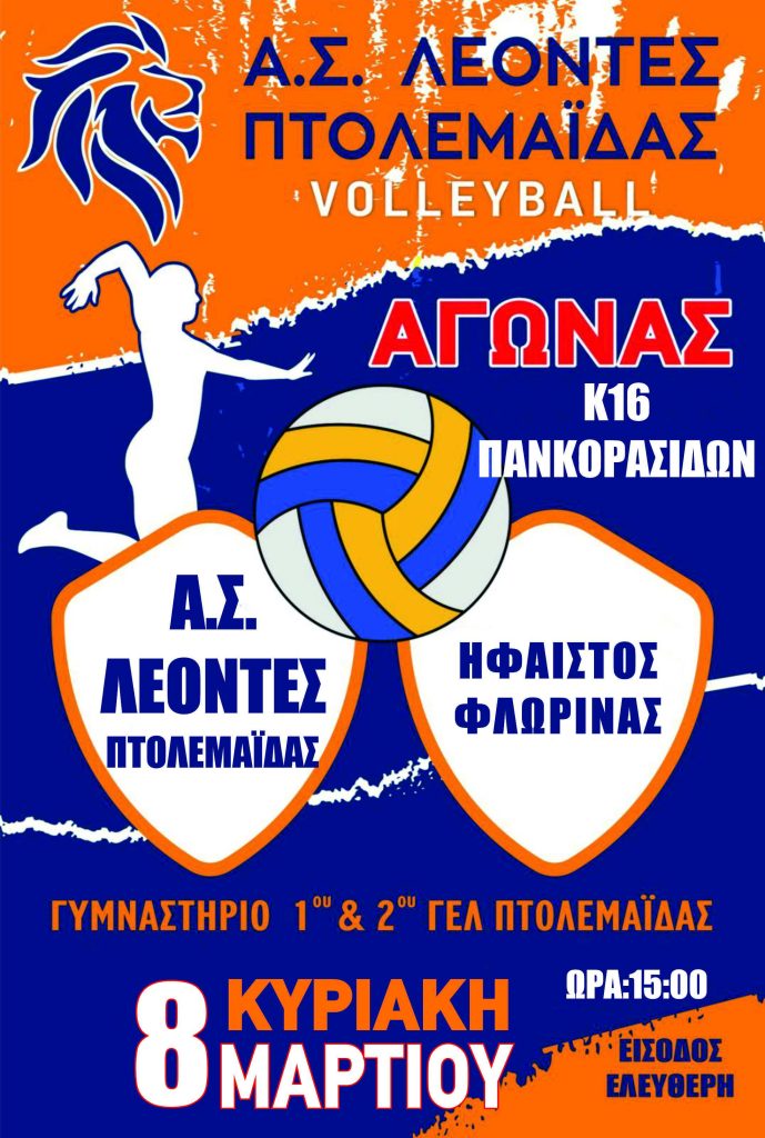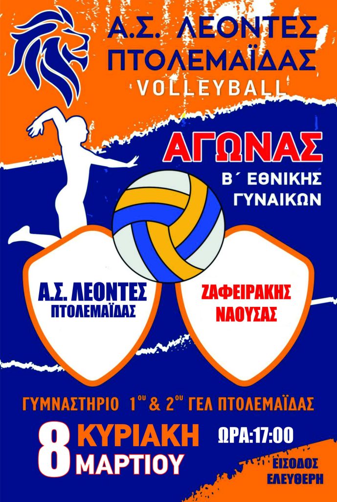 Α.Σ. ΛΕΟΝΤΕΣ Πτολεμαϊδας: Αγώνες volleyball Κ18 και Β Εθνικής γυναικών,την Κυριακή 8 Μαρτίου