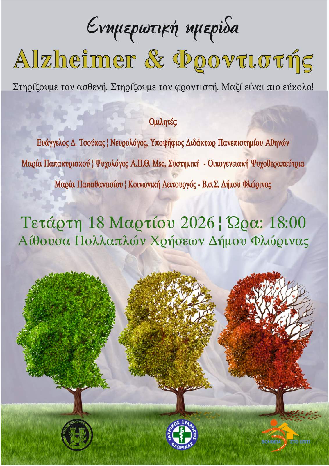 Ο Δήμος Φλώρινας σας προσκαλεί σε ενημερωτική ημερίδα με θέμα: «Alzheimer & Φροντιστής».