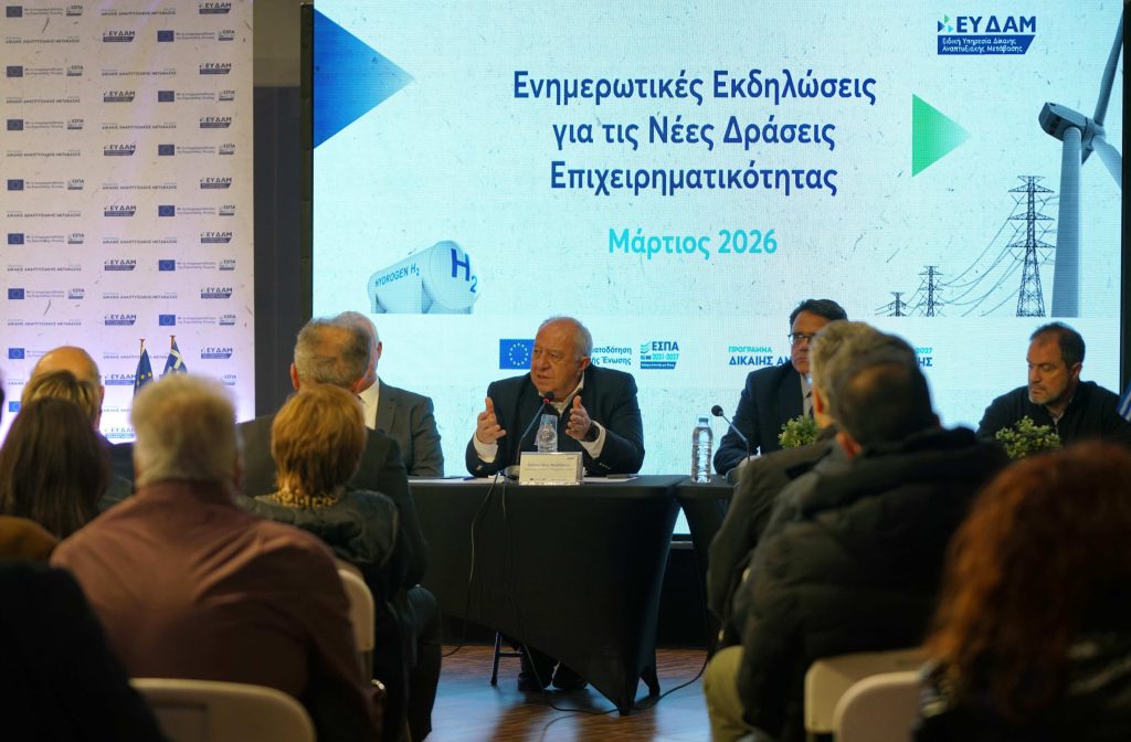 Με μεγάλη συμμετοχή του επιχειρηματικού κόσμου και των θεσμικών εκπροσώπων της περιοχής, ολοκληρώθηκε την Τετάρτη 4 Μαρτίου η κεντρική ενημερωτική εκδήλωση της Ειδικής Υπηρεσίας Δίκαιης Αναπτυξιακής Μετάβασης (ΕΥΔΑΜ) στην Κοζάνη, σε συνεργασία με τον ΕΦΕΠΑΕ και την Ελληνική Αναπτυξιακή Τράπεζα. Η εκδήλωση εντάσσεται στον ευρύτερο κύκλο συναντήσεων που υλοποιείται στη Δυτική Μακεδονία, με στόχο τη στενή συνεργασία με τις τοπικές κοινωνίες και την επιτάχυνση της παραγωγικής ανασυγκρότησης της περιοχής στη μετά-λιγνιτική εποχή.