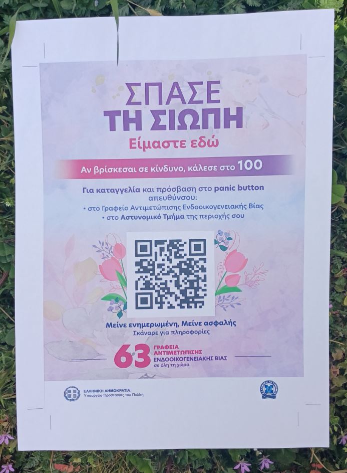 Σκοπός των δράσεων είναι η διανομή ενημερωτικού υλικού (αφίσα) με QR κωδικό, που παραπέμπει σε οδηγίες και διαθέσιμα εργαλεία, για θέματα που εμπίπτουν στο νόμο περί ενδοοικογενειακής βίας, καθώς και η ενθάρρυνση των πολιτών να «Σπάσουν τη Σιωπή» και να καταγγέλλουν περιστατικά βίας.