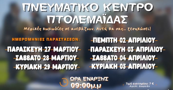 Η θεατρική κωμωδία “Τ’ ΕΞ΄ ΤΟ ΒΟΥΔ ‘ΧΑΡΑΛΑΜΠΕ”, στο Πνευματικό Κέντρο Πτολεμαϊδας, 27-28-29/3 & 2-3-4-5/4 (Βίντεο)