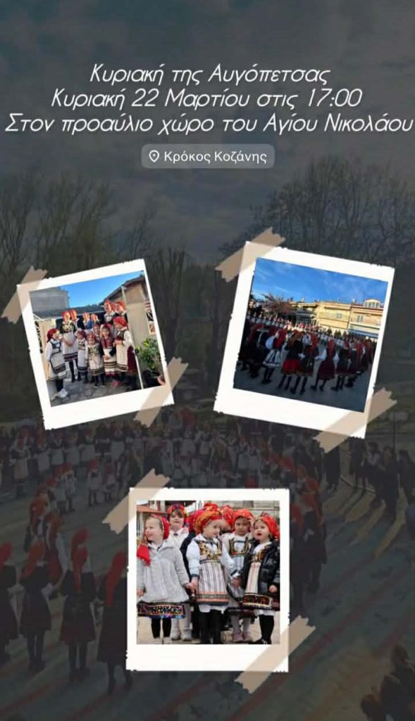 Κυριακή της Αυγόπετσας την Κυριακή 22 Μαρτίου στις 17:00 στον προαύλιο χώρο του Αγ. Νικολάου στον Κρόκο Κοζάνης.