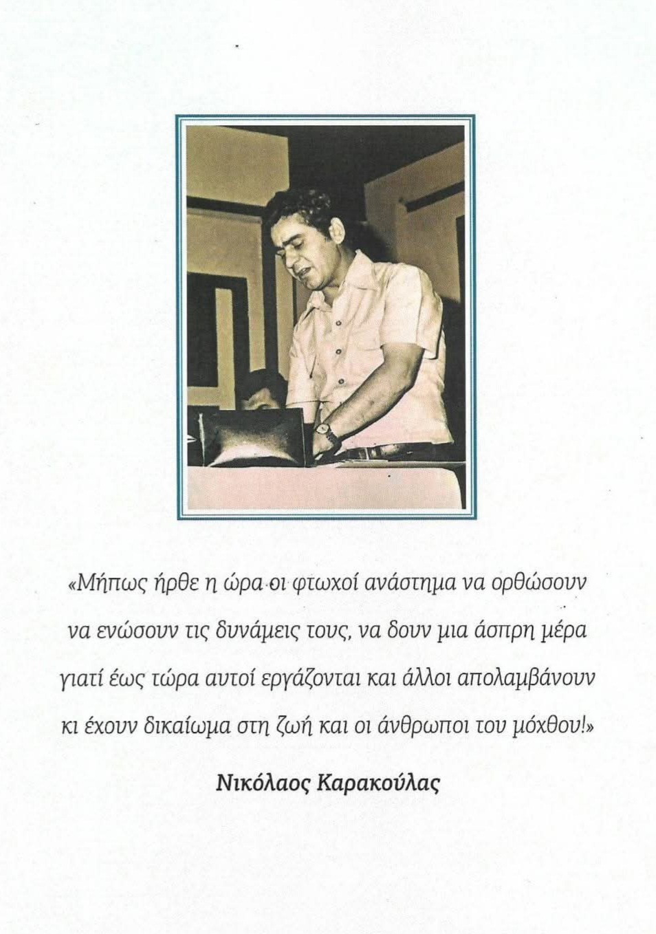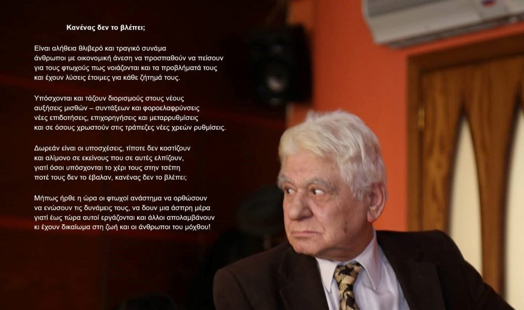 Μήπως ήρθε η ώρα οι φτωχοί ανάστημα να ορθώσουν να ενώσουν τις δυνάμεις τους, να δουν μια άσπρη μέρα γιατί έως τώρα αυτοί εργάζονται και άλλοι απολαμβάνουν κι έχουν δικαίωμα στη ζωή και οι άνθρωποι του μόχθου!