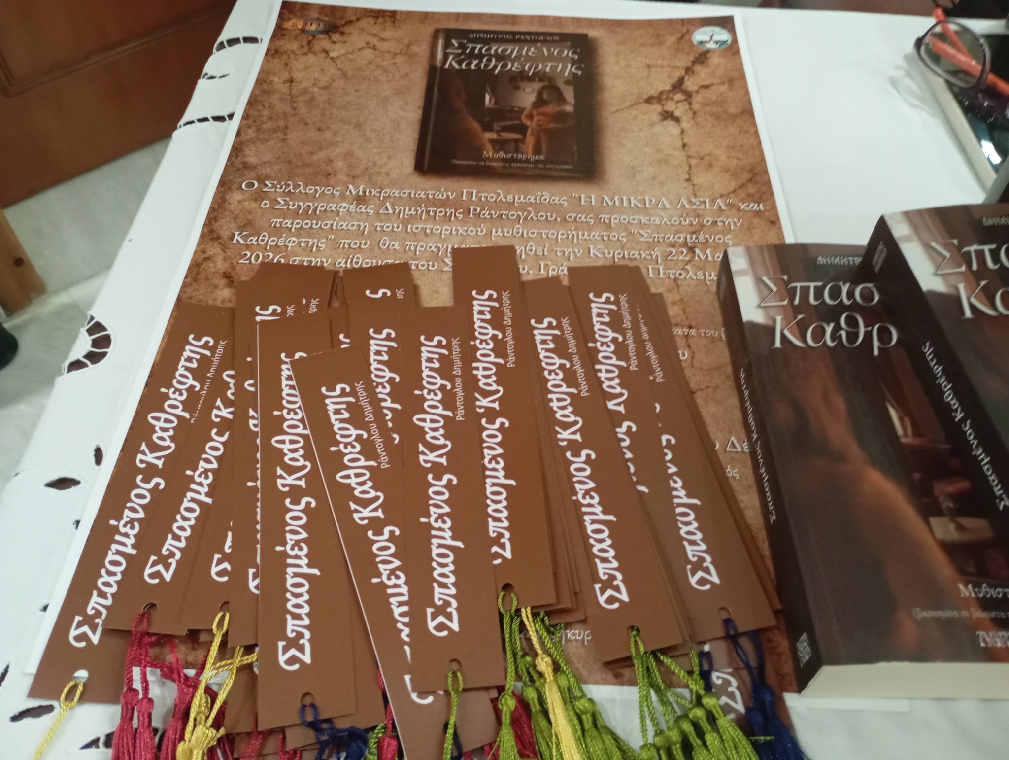 Με επιτυχία πραγματοποιήθηκε την Κυριακή 22 Μαρτίου 2026 και ώρα 20:00 στην Πτολεμαΐδα η παρουσίαση του ιστορικού μυθιστορήματος «Σπασμένος Καθρέφτης» του συγγραφέα Δημήτρη Ράντογλου. Η εκδήλωση διοργανώθηκε από τον Σύλλογο Μικρασιατών Πτολεμαΐδας «Η ΜΙΚΡΑ ΑΣΙΑ» και φιλοξενήθηκε στην αίθουσα του Συλλόγου, στην οδό Γράμμου 36, συγκεντρώνοντας το ενδιαφέρον φίλων της λογοτεχνίας και της τοπικής κοινωνίας.