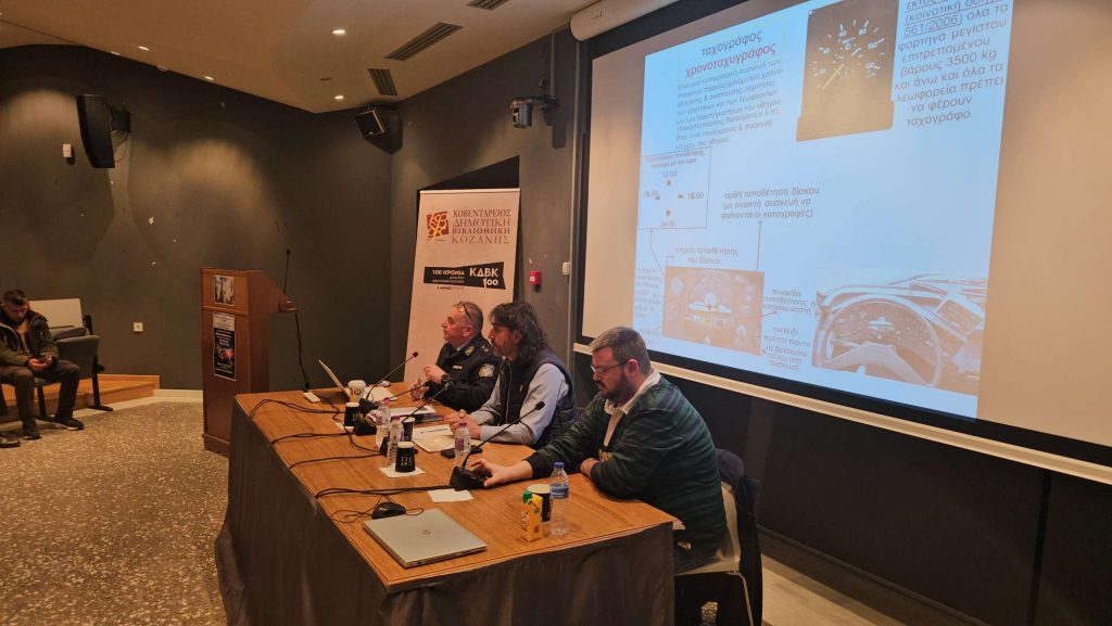 Με σημαντική συμμετοχή πραγματοποιήθηκε το απόγευμα της Δευτέρας 23 Μαρτίου, στην Κοβεντάρειο Δημοτική Βιβλιοθήκη Κοζάνης, η ενημερωτική εσπερίδα με θέμα: «Οδική Ασφάλεια και Επικαιροποιημένη Νομοθεσία – Νέος Κώδικας Οδικής Κυκλοφορίας». Την εκδήλωση διοργάνωσε ο Σύλλογος Δημοτικών Υπαλλήλων Π.Ε. Κοζάνης, σε συνεργασία με τη Διεύθυνση Αστυνομίας και το Τμήμα Τροχαίας Κοζάνης, με στόχο την ουσιαστική ενημέρωση των πολιτών και των εργαζομένων για τις αλλαγές που φέρνει ο νέος ΚΟΚ.