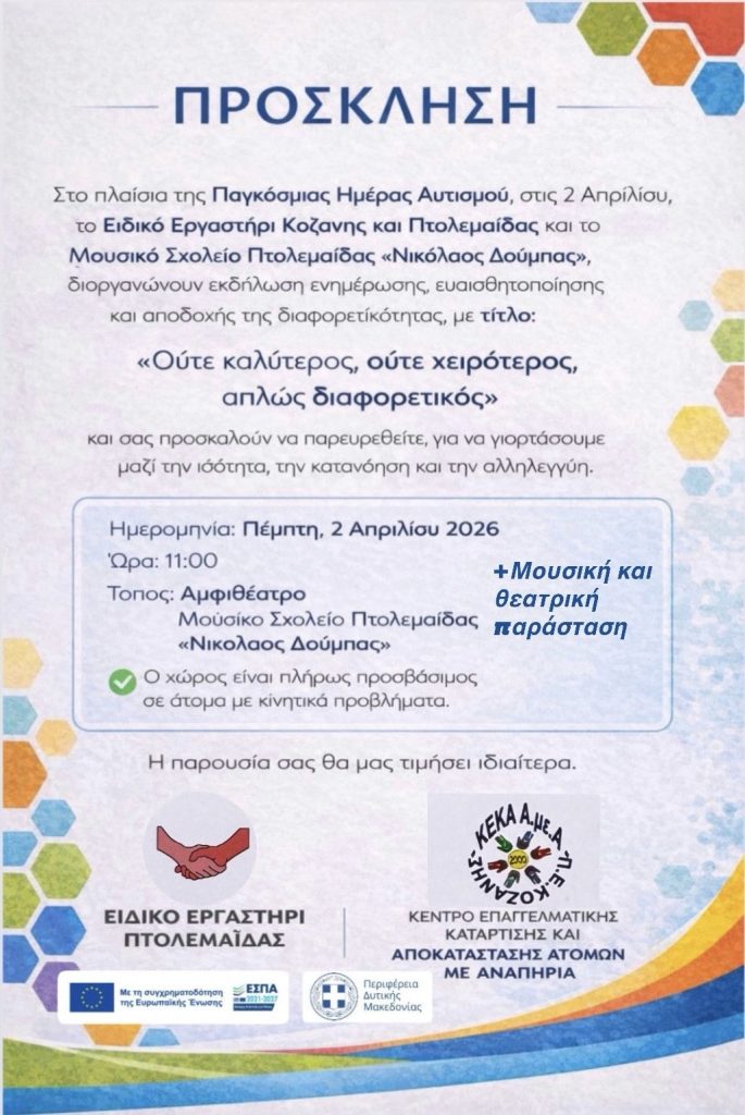 Ημερομηνία: Πέμπτη 02 Απριλίου 2026, Ώρα 11:00 Τόπος: Αμφιθέατρο Μουσικού Σχολείου Πτολεμαΐδας «ΝΙΚΟΛΑΟΣ ΔΟΥΜΠΑΣ»