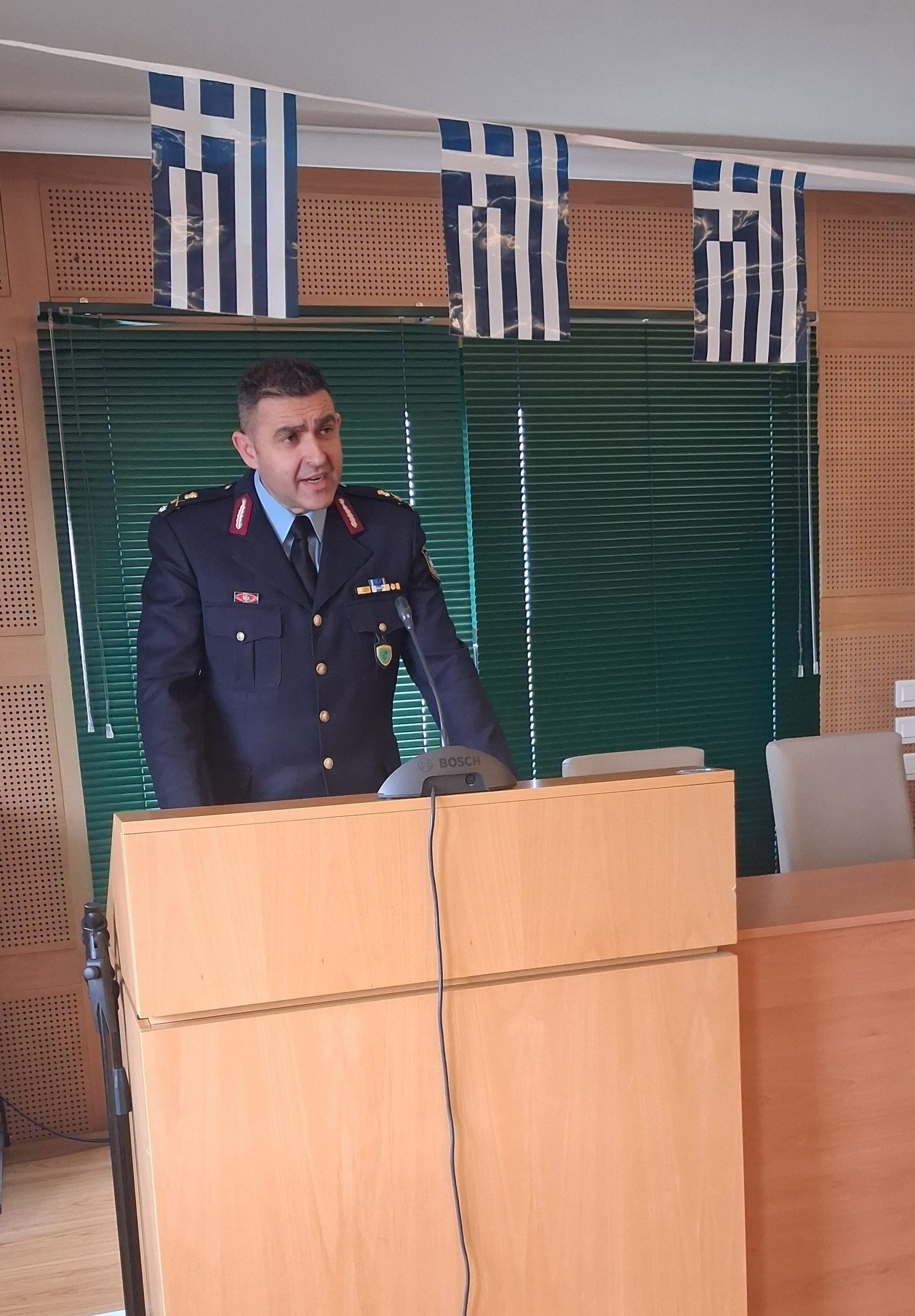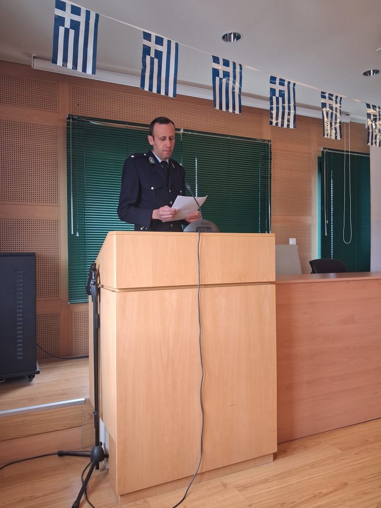 Κατά την εκδήλωση που έλαβε χώρα στη Γενική Περιφερειακή Αστυνομική Διεύθυνση Δυτικής Μακεδονίας, στην Κοζάνη, σύντομο χαιρετισμό απηύθυνε ο Γενικός Περιφερειακός Αστυνομικός Διευθυντής Δυτικής Μακεδονίας, Ταξίαρχος κ. Νικόλαος Έξαρχος. Στην τοποθέτησή του, μεταξύ άλλων, ανέφερε ότι «…η 25η Μαρτίου αποτελεί για όλους μας ημέρα μεγάλης ιστορικής και πνευματικής σημασίας, καθώς συμβολίζει την αναγέννηση του ελληνικού έθνους και τον διαχρονικό αγώνα για ελευθερία και αξιοπρέπεια. Η ελευθερία που απολαμβάνουμε σήμερα είναι καρπός των θυσιών των αγωνιστών του 1821 και το παράδειγμά τους οφείλει να μας καθοδηγεί στις σύγχρονες προκλήσεις, με υπευθυνότητα και προσήλωση στις αξίες της πατρίδας μας…».