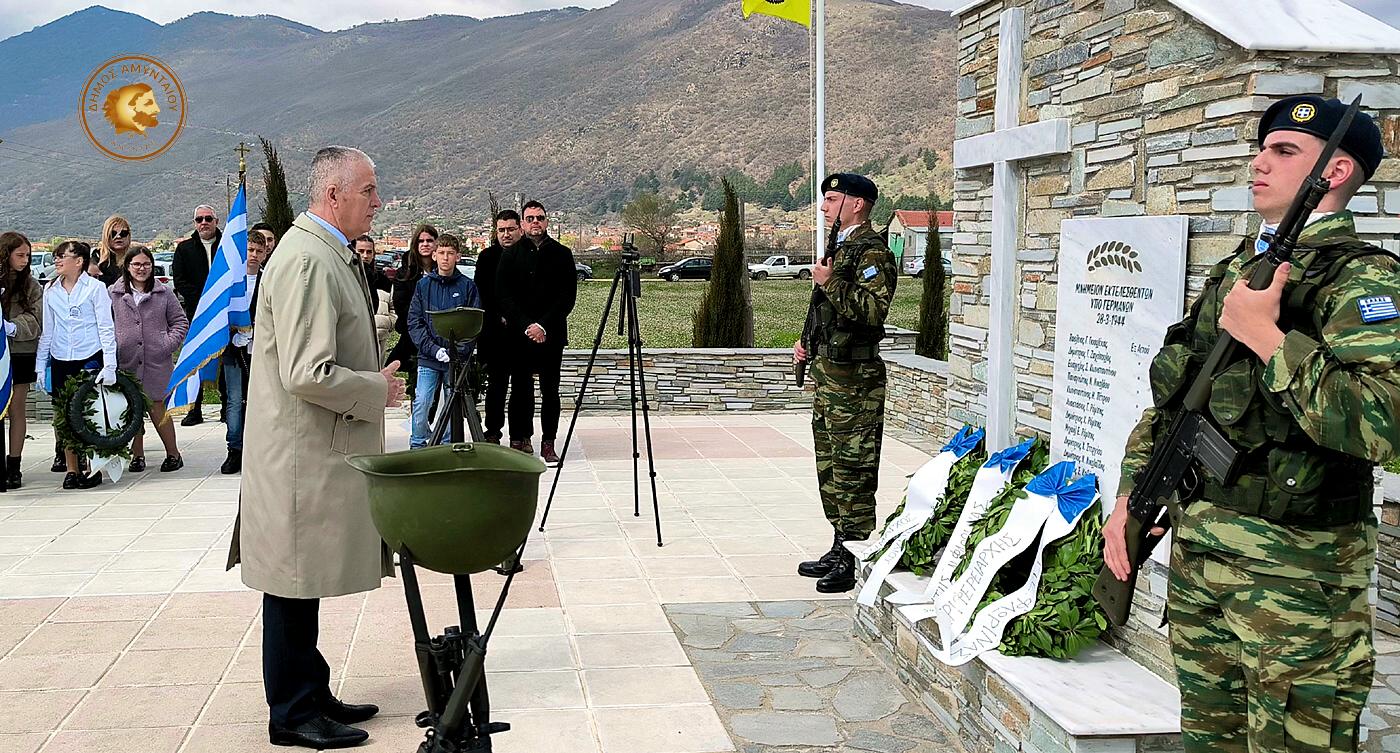 Με σεβασμό και συγκίνηση πραγματοποιήθηκαν το πρωί του Σαββάτου 28 Μαρτίου 2026, στη Δημοτική Κοινότητα Αετού, οι εκδηλώσεις μνήμης για τους κατοίκους του Δήμου Αμυνταίου που εκτελέστηκαν στις 28 Μαρτίου 1944 από τα γερμανικά στρατεύματα κατοχής.