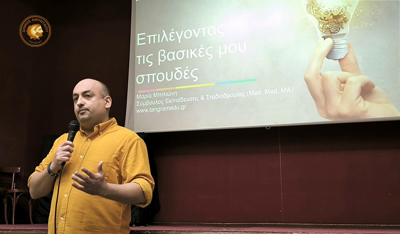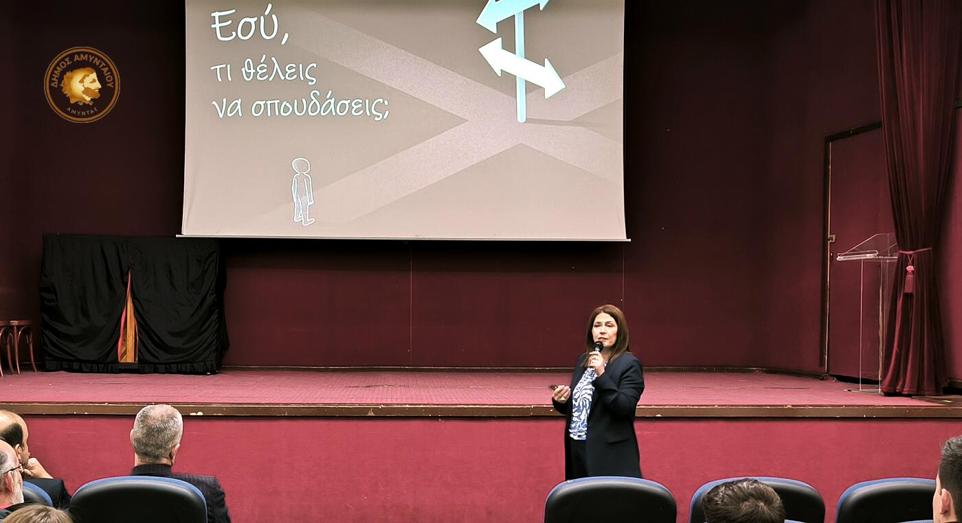 Με επιτυχία πραγματοποιήθηκε την Κυριακή 29 Μαρτίου 2026, στο Πνευματικό Κέντρο Αμυνταίου, η εκδήλωση επαγγελματικού προσανατολισμού, με στόχο την ουσιαστική ενημέρωση και καθοδήγηση των μαθητών για τις εκπαιδευτικές και επαγγελματικές επιλογές που ανοίγονται μπροστά τους.