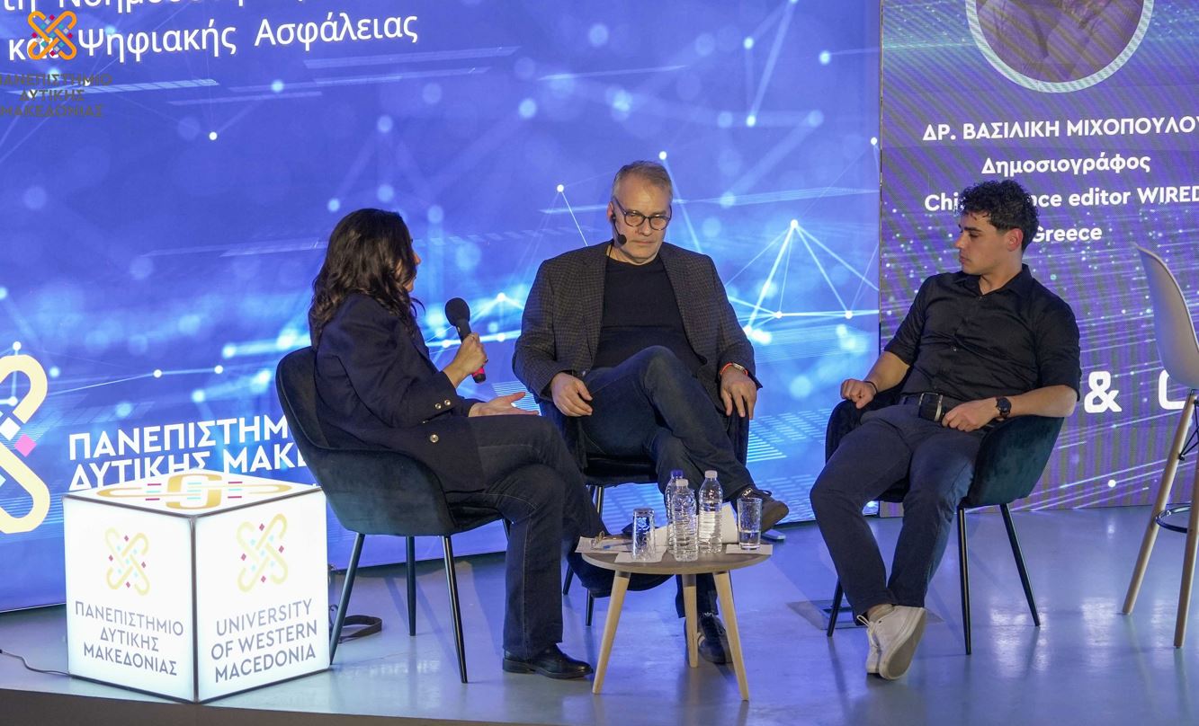 Στην πρώτη ενότητα για την κυβερνοασφάλεια και τους ψηφιακούς κινδύνους, ο Μιχάλης Μπλέτσας, Διοικητής της Εθνικής Αρχής Κυβερνοασφάλειας, και ο Πάνος Σαρηγιαννίδης, Καθηγητής του Πανεπιστημίου Δυτικής Μακεδονίας, ανέδειξαν το εύρος των σύγχρονων απειλών: από την κακή χρήση δεδομένων και τα κακόβουλα λογισμικά έως πιο σύνθετες μορφές ψηφιακών επιθέσεων. Τονίστηκε ότι η ασφάλεια δεν αποτελεί μόνο τεχνικό ζήτημα, αλλά συνδέεται άμεσα με τη συμπεριφορά και την ενημέρωση των χρηστών.