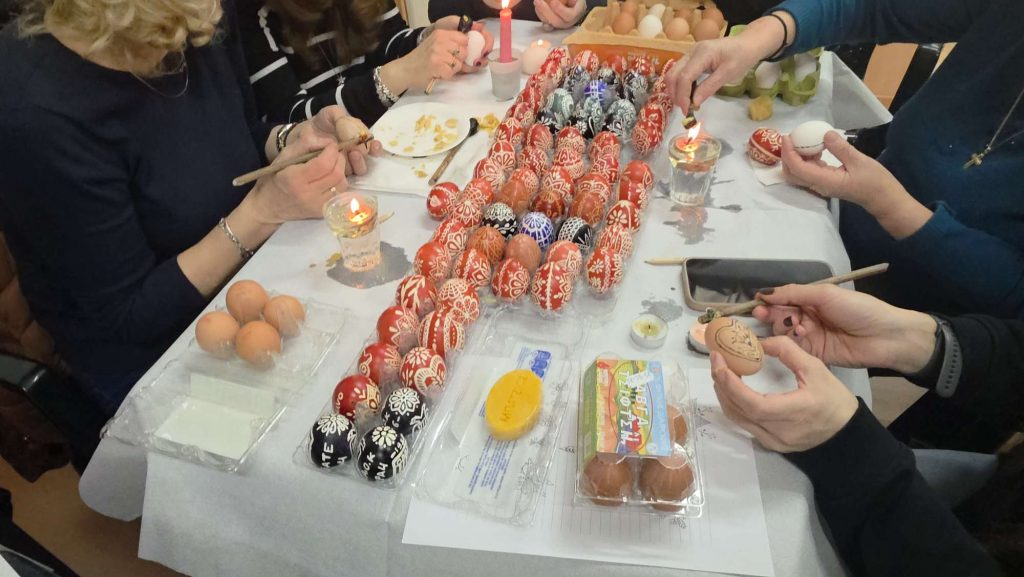 Η εκδήλωση φιλοξενήθηκε στην αίθουσα του χορευτικού του συλλόγου και, όπως κάθε χρόνο από το 2016, συγκέντρωσε μέλη και φίλους του συλλόγου που συμμετείχαν ενεργά στη διαδικασία δημιουργίας των παραδοσιακών αυγών.