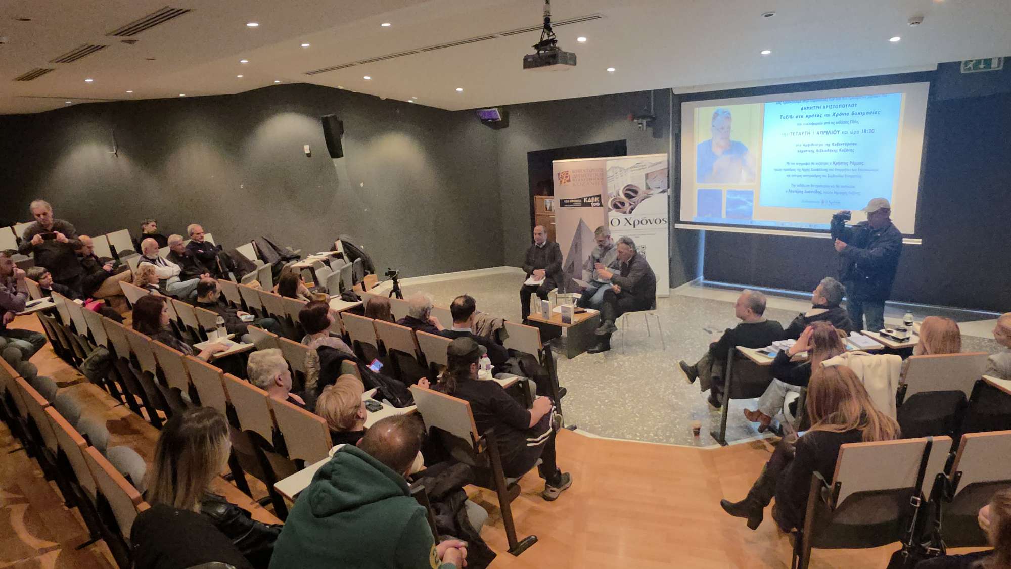 Με ιδιαίτερο ενδιαφέρον πραγματοποιήθηκε σήμερα, Τετάρτη 1 Απριλίου 2026, στο Αμφιθέατρο της Δημοτικής Βιβλιοθήκης Κοζάνης, η παρουσίαση των δύο πρόσφατων βιβλίων του Δημήτρη Χριστόπουλου, «Ταξίδι στο κράτος» και «Χρόνια δοκιμασίας», που κυκλοφορούν από τις εκδόσεις Πόλις.