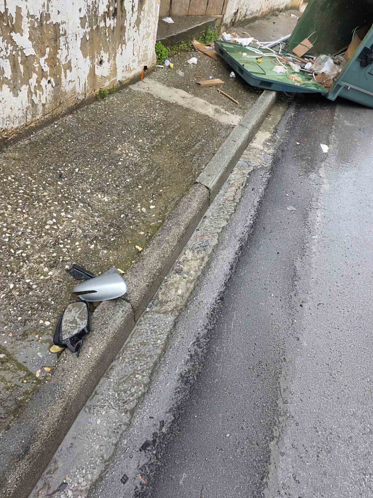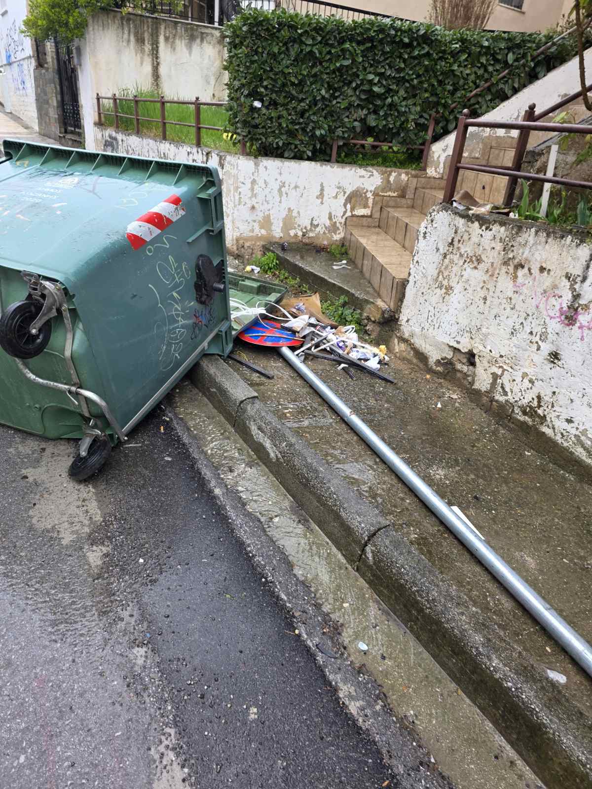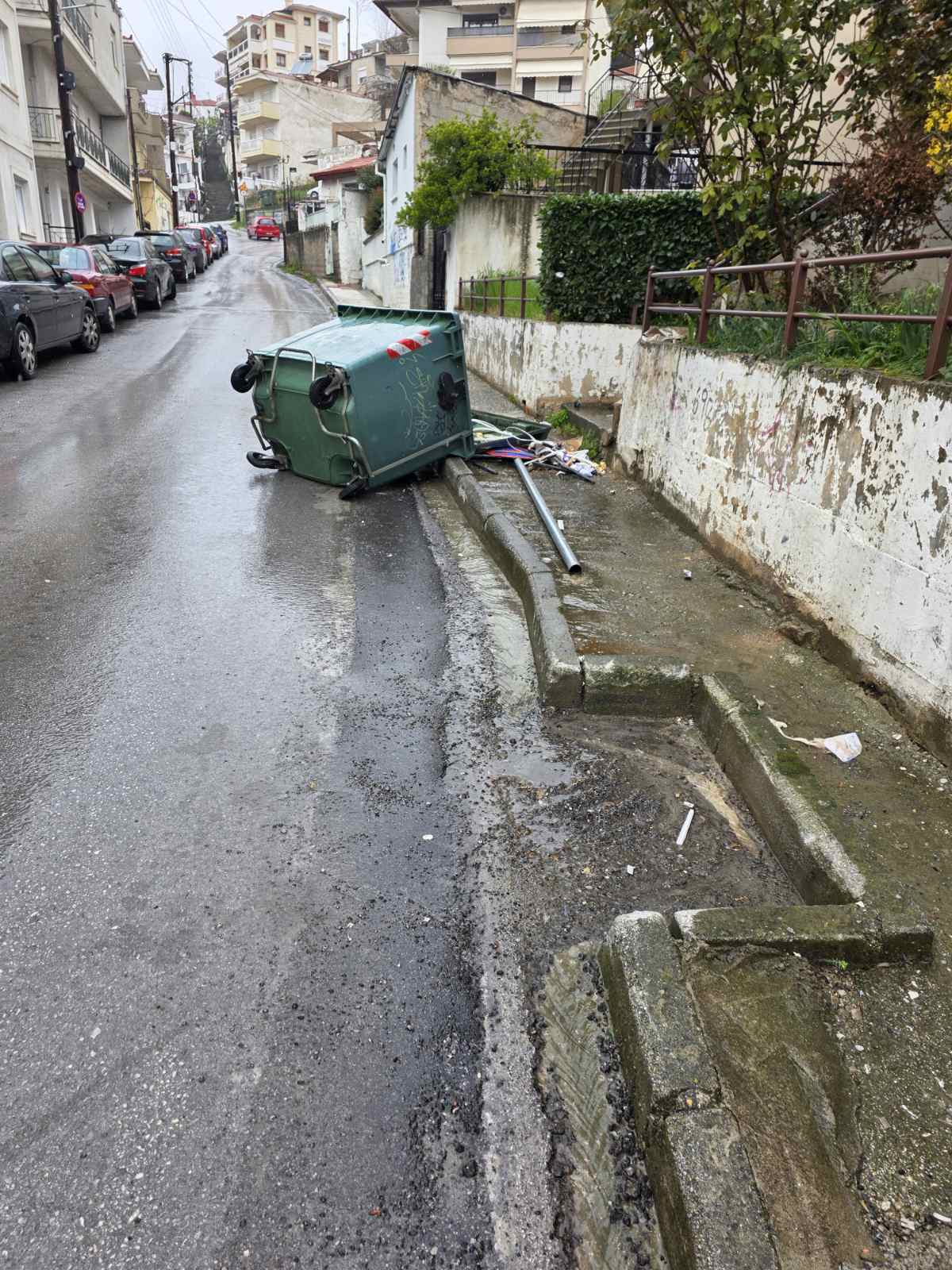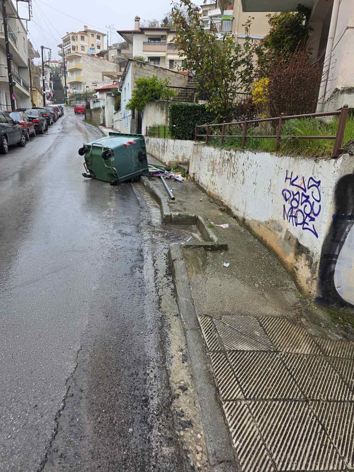 Ο κάδος έχει ανατραπεί στο οδόστρωμα, ενώ διάσπαρτα αντικείμενα _ σκουπίδια και βρίσκονται κατά μήκος του πεζοδρομίου, δημιουργώντας μια εικόνα ακαταστασίας. Για το συγκεκριμένο περιστατικό ειδοποιήθηκε πριν από λίγο τόσο η Τροχαία οσο και Δημοτική Αστυνομία Κοζάνης.