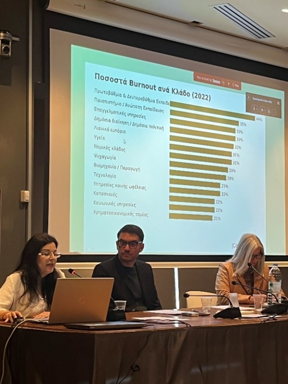 Με αντιπροσωπευτικά παραδείγματα, οι ψυχολόγοι του ΚΕ.Δ.Α.Σ.Υ. Κοζάνης κα Σιλβιστοπούλου Ευμορφία και ο κος Κιουρτίδης Κυριάκος αναφέρθηκαν στον ορισμό της επαγγελματικής εξουθένωσης, στα αίτια, τις συνέπειες, τους προστατευτικούς παράγοντες και τους τρόπους αντιμετώπισης. Ο Σύμβουλος Δασκάλων και Επόπτης Α/θμιας Εκπαίδευσης κος Μαλέτσκος Αθανάσιος αναφέρθηκε στις αίτιες και τις συμπεριφορές πρόκλησης του φαινομένου. Η Επίκουρος Καθηγήτρια του τμήματος Ψυχολογίας Π.Δ.Μ. κα Μαλεγιαννάκη Αμαρυλλίς-Χρυσή περιέγραψε τις νευροφυσιολογικές αλλοιώσεις που προκύπτουν σε καταστάσεις στρες, ενώ αναφέρθηκε και σε ερευνητικά δεδομένα που αποτυπώνουν τα ποσοστά των εκπαιδευτικών που πλήττονται από την επαγγελματική εξουθένωση και τα οποία ανέρχονται στο 44% για τους Β/θμιους εκπαιδευτικούς και 44% για Α/θμιους και 35% για τους Πανεπιστημιακούς. Η Διευθύντρια Πρωτοβάθμιας Εκπαίδευσης Φλώρινας, κα Μούσιου Μυλωνά Όλγα, αναφέρθηκε στο φαινόμενο εστιάζοντας κυρίως σε μοντέλα και πρακτικές συλλειτουργίας μέσα στον εκπαιδευτικό χώρο, δίνοντας βαρύτητα σε μια θετική και συναδερφική προσέγγιση και σ’ ένα καλό εργασιακό κλίμα. Ο Ψυχίατρος-Ψυχαναλυτής Δρ. Αραπίδης Κωνσταντίνος, με προσανατολισμό λιτό, επιστημονικό, ρεαλιστικό και ανθρωποκεντρικό μέσα από μία εύστοχη βιωματική προσέγγιση υπό τη σκοπιά του εκπαιδευτικού, τόνισε το ρόλο της ομάδας και της συνεργασίας. Όλα τα ανωτέρω αποτελούν μία προτροπή για να εκλείψουν φαινόμενα burn-out/team out με απόληξη σε ένα κοινό μήνυμα από διάφορες οπτικές αυτοφροντίδας και ετεροφροντίδας.