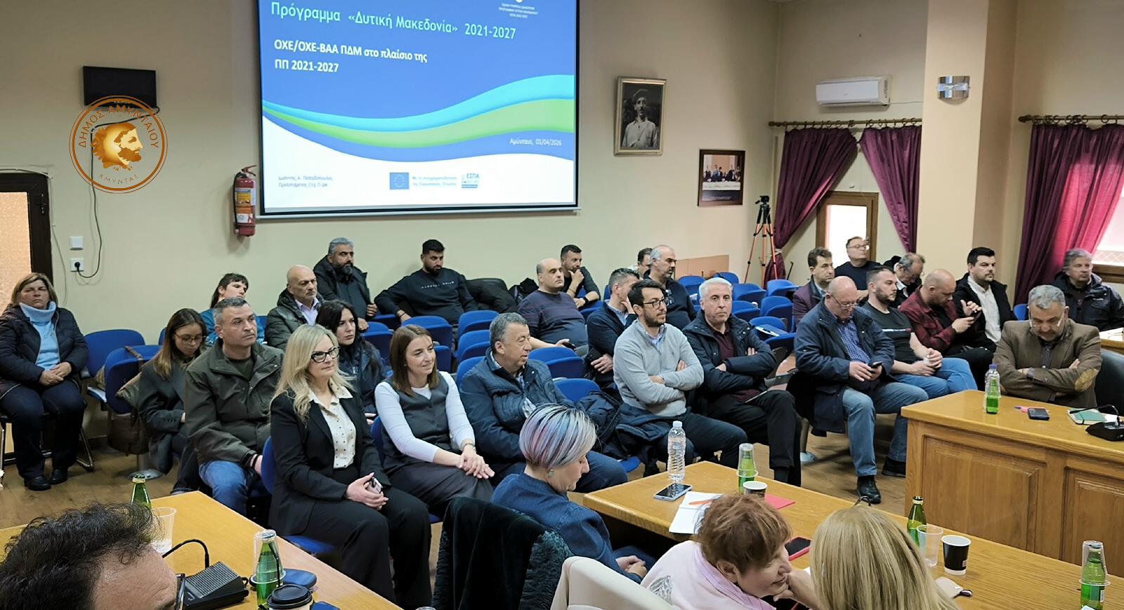 Με μεγάλη επιτυχία πραγματοποιήθηκε χθες, στην αίθουσα του Δημοτικού Συμβουλίου Αμυνταίου, η ενημερωτική εκδήλωση με θέμα την «Ολοκληρωμένη Χωρική Επένδυση (Ο.Χ.Ε.) Λιμνών και Ποταμών Δυτικής Μακεδονίας».