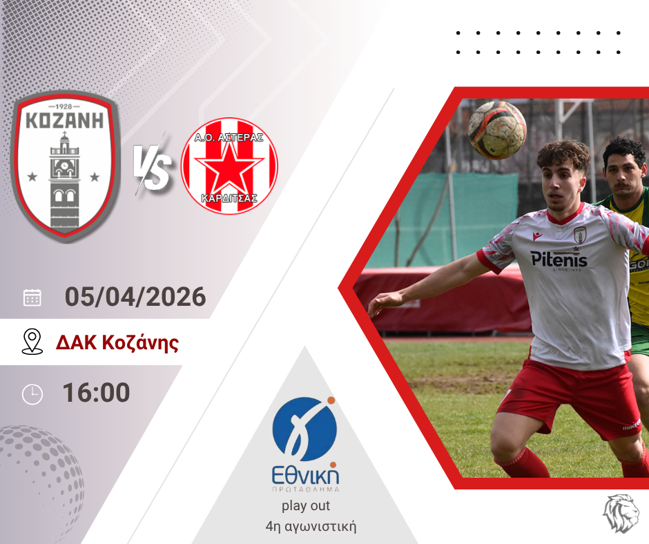 Την Κυριακή στο ΔΑΚ Κοζάνης και ώρα 4μμ η Κοζάνη δίνει έναν από τους πιο καθοριστικούς αγώνες της χρονιάς απέναντι στον Αστέρα Καρδίτσας και το μήνυμα είναι ένα: νίκη και μόνο νίκη.