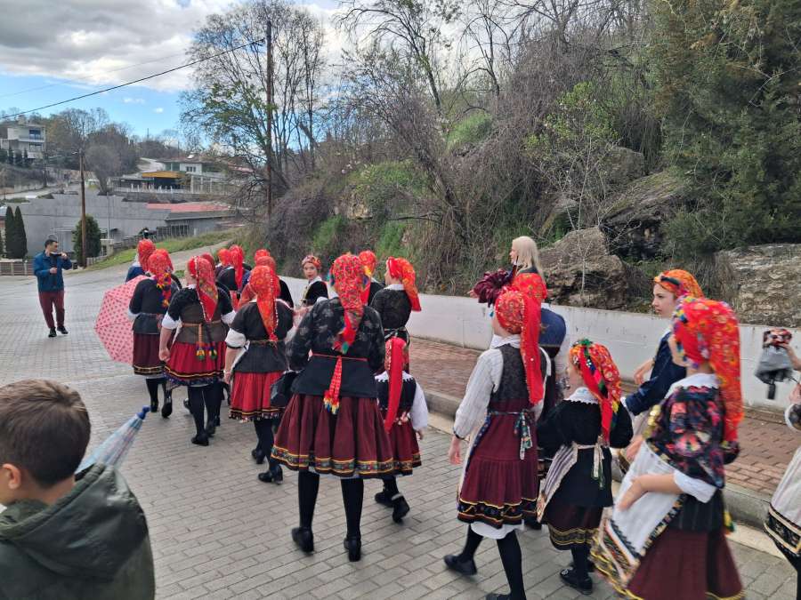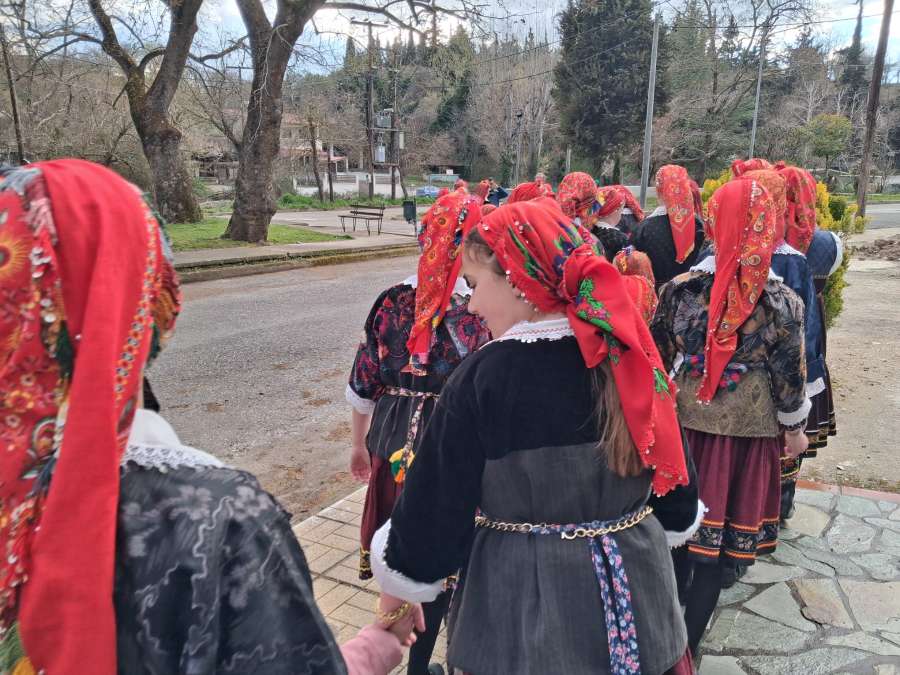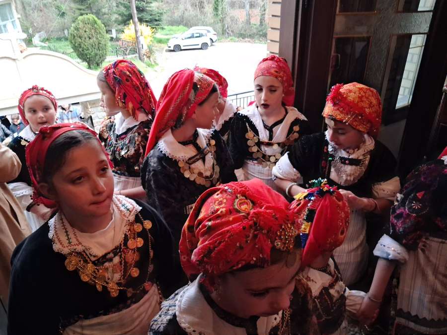 Οι Λαζαρίνες, ντυμένες με τις παραδοσιακές φορεσιές τους, επισκέφθηκαν την εκκλησία και τα σπίτια του χωριού, μεταφέροντας το μήνυμα της άνοιξης και της αναγέννησης, όπως επιτάσσει το έθιμο.