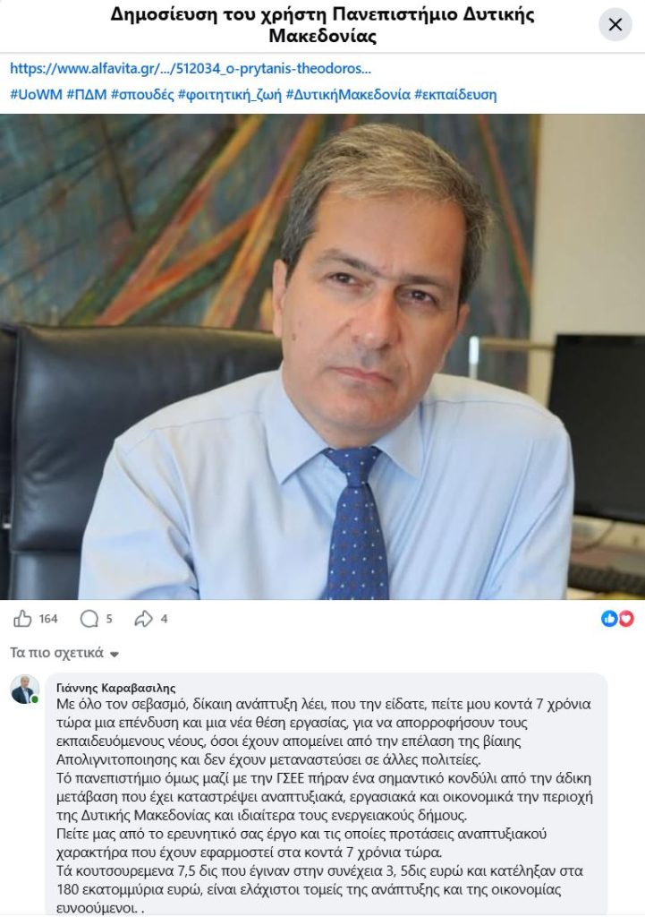 Μπορεί ο πρύτανης του Πανεπιστημίου Δυτικής Μακεδονίας, Θ. Θεοδουλίδης, να περιγράφει ένα ίδρυμα που «τρέχει» με ταχύτητες καινοτομίας, εξωστρέφειας και διασύνδεσης με την αγορά εργασίας (διαβάστε τη συνέντευξή του στο alfavita.gr), ωστόσο δεν συμμερίζονται όλοι την ίδια εικόνα.