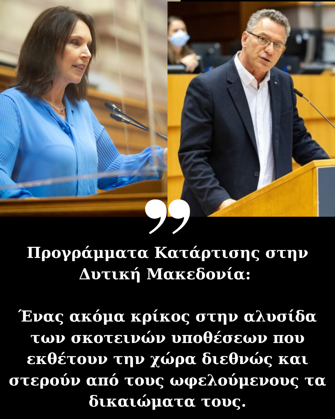 Ο Κώστας Αρβανίτης και η Καλλιόπη Βέττα, Ευρωβουλευτής ΣΥΡΙΖΑ Π.Σ και Βουλευτής ΣΥΡΙΖΑ Π.Σ. Π.Ε. Κοζάνης, αντίστοιχα, προέβησαν στην κατάθεση ερωτήσεων στα οικεία Κοινοβούλια σχετικά με το πόρισμα της Έκθεσης Ελέγχου της Ευρωπαϊκής Επιτροπής της 27ης Φεβρουαρίου για προγράμματα κατάρτισης στην χώρα, στο οποίο καταγράφονται πλείστες σοβαρές παραβάσεις που οδήγησαν σε επιβολή προστίμου 25% επί του συνολικού ποσού, καθώς και αυστηρές συστάσεις για την ακολουθούμενη διαδικασία.