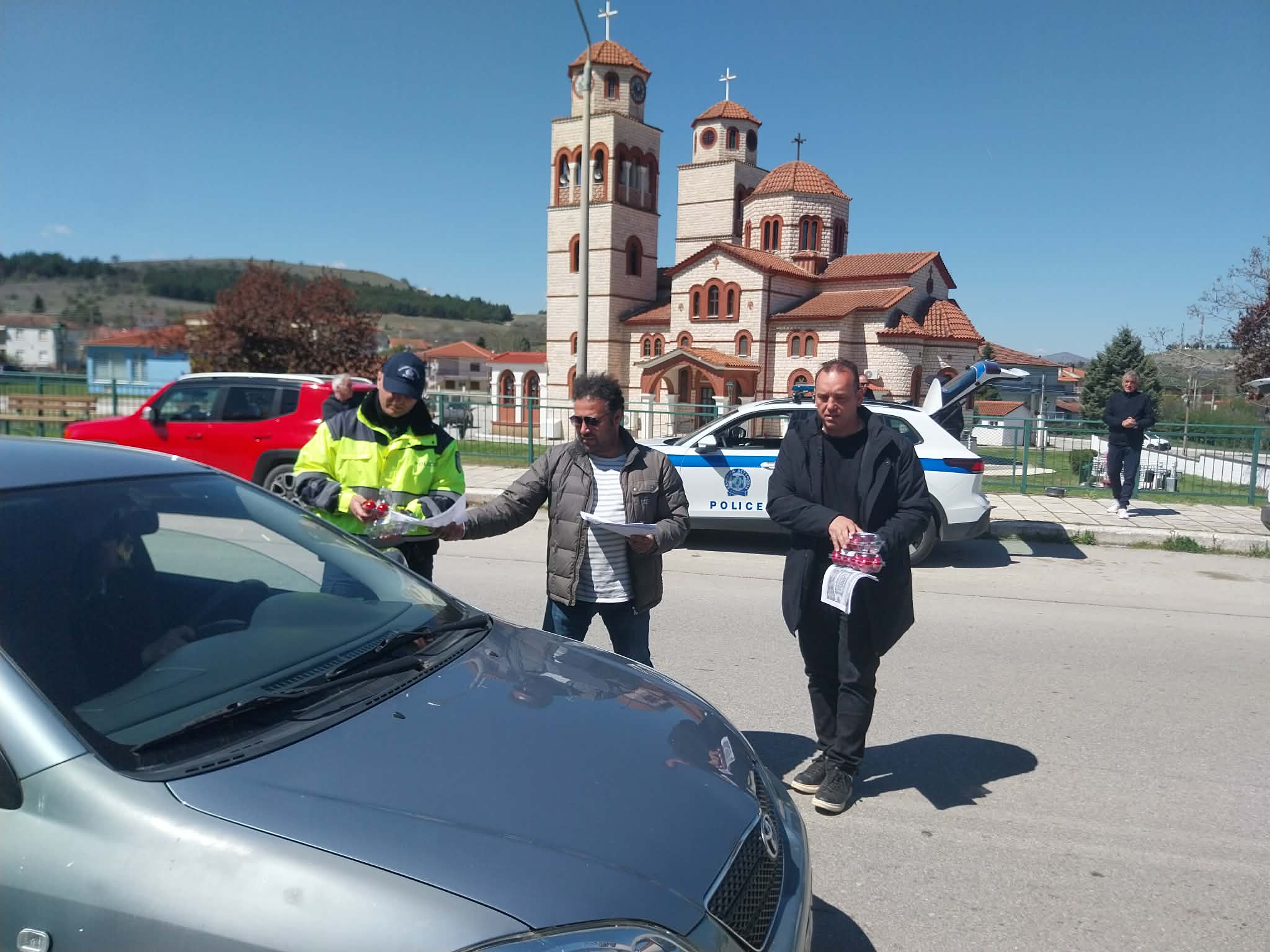 Κόκκινα αυγά, συμβουλές για ασφαλείς μετακινήσεις και πολλές ευχές για Καλό Πάσχα, μοίρασαν το μεσημέρι της Μεγάλης Πέμπτης 9 Απριλίου 2026 στο Δρέπανο, οι Αντιδήμαρχοι Ζήσης Στημονιάρης και Θόδωρος Αντωνιάδης, μαζί με τον Πρόεδρο της Κοινότητας Φώτη Παπαδημητρίου, την Τοπική Σύμβουλο Σοφία Τριανταφυλλίδου, τον συνδημότη μας Στάθη Ιασωνίδη και στελεχών της Τροχαίας Κοζάνης, με επικεφαλής τον Διοικητή Ελευθέριο Καραδίσογλου.