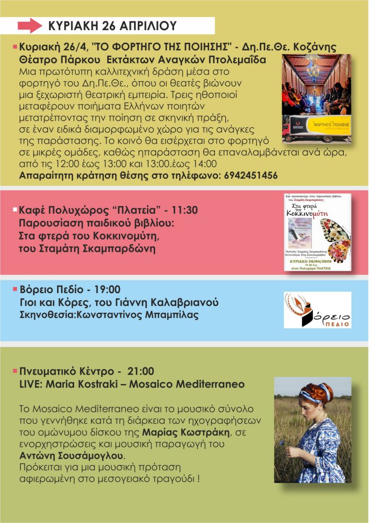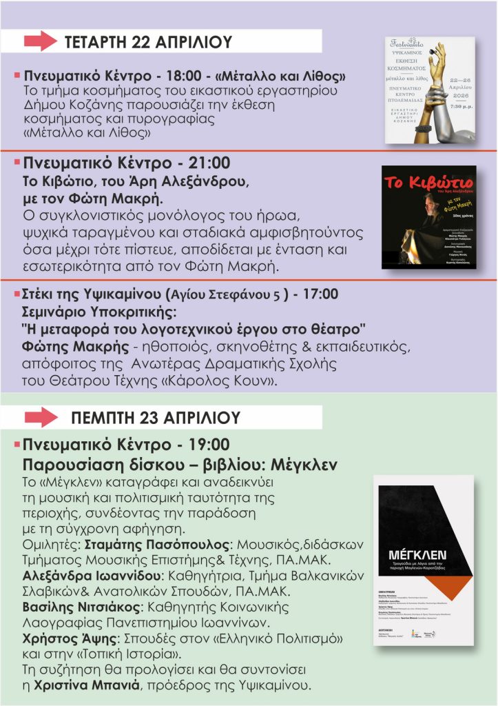 Ο πολιτιστικός Σύλλογος ΥΨΙΚΑΜΙΝΟΣ σας προσκαλεί στη γιορτή πολιτισμού από 22 έως 26 Απρίλιου 2026 στην Πτολεμαΐδα!